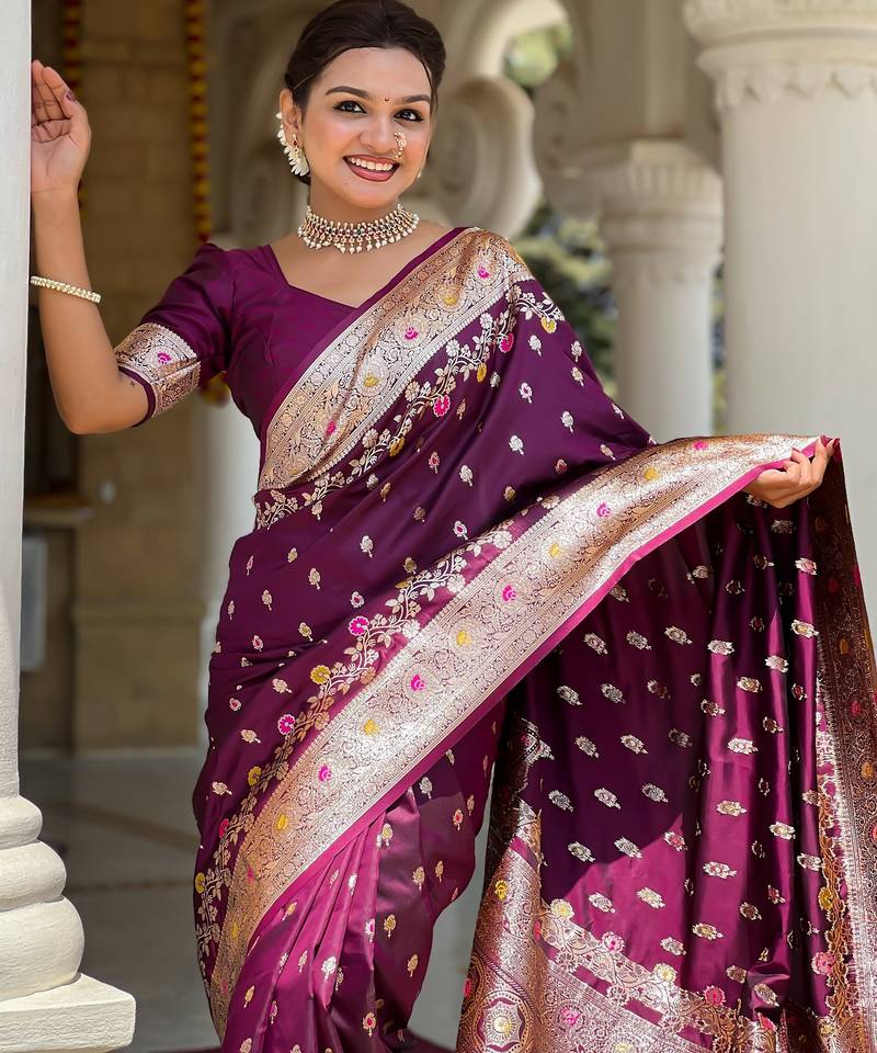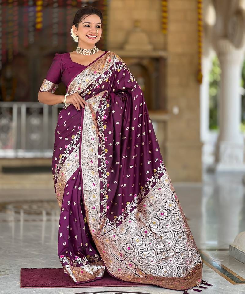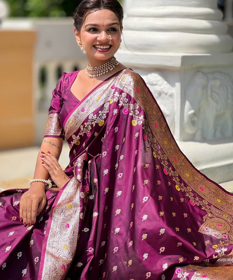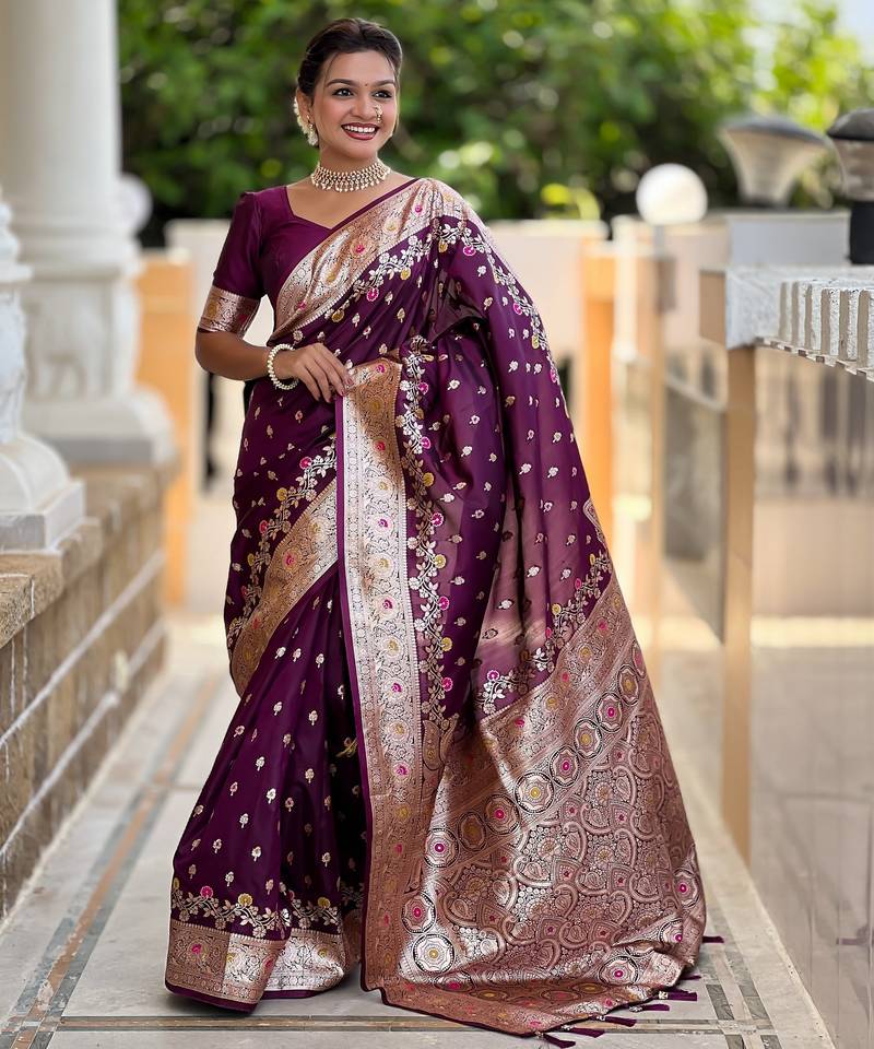 Soft litchi art silk banarasi art silk jacquard saree (banarasi-7-wine)