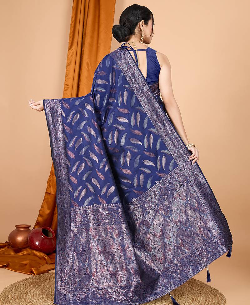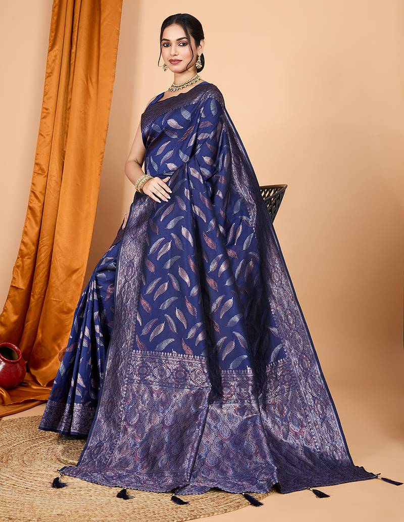 Soft litchi art silk banarasi art silk jacquard saree (morpich-navy)