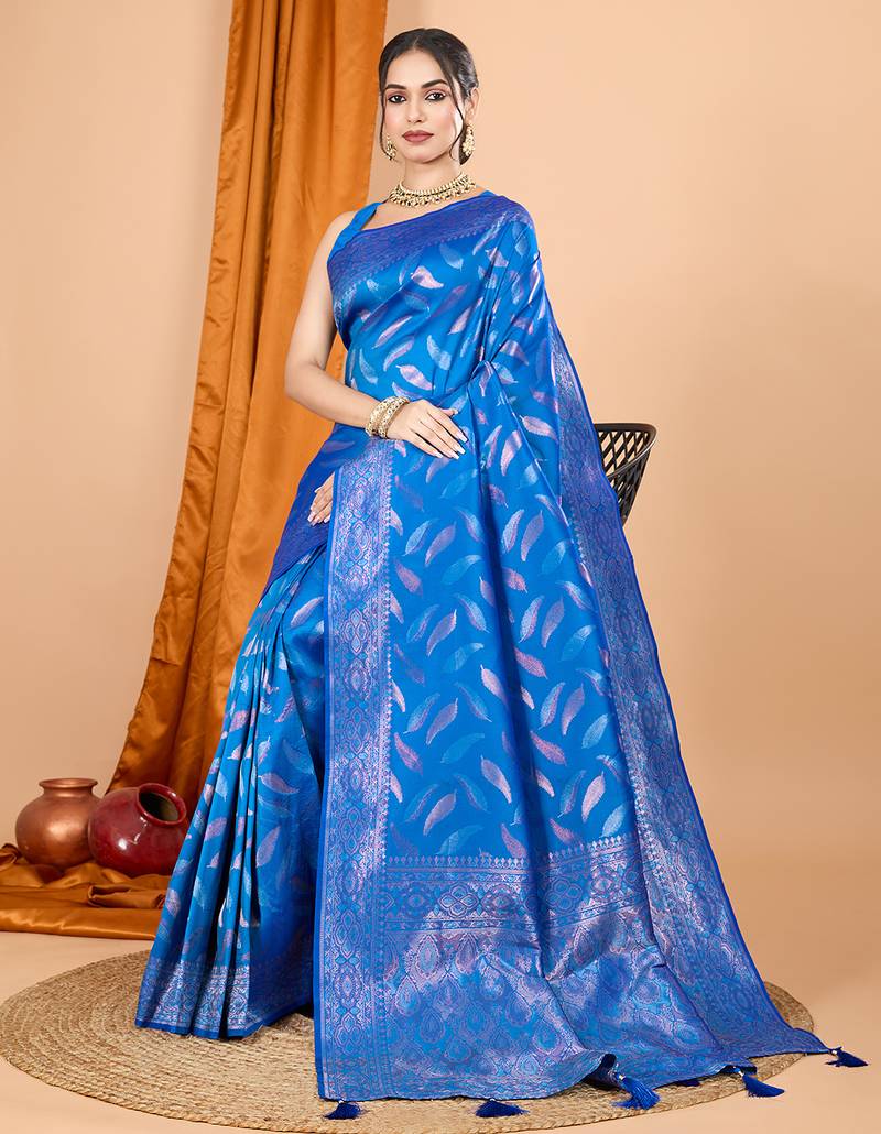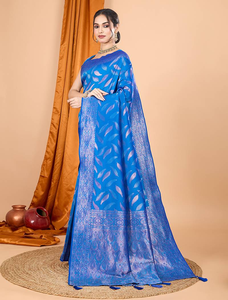 Soft litchi art silk banarasi art silk jacquard saree (morpich-r-blue)