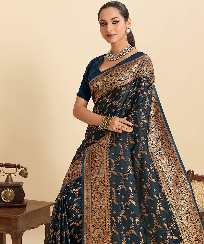 Soft litchi art silk banarasi art silk jacquard saree (nayanthara-navy)