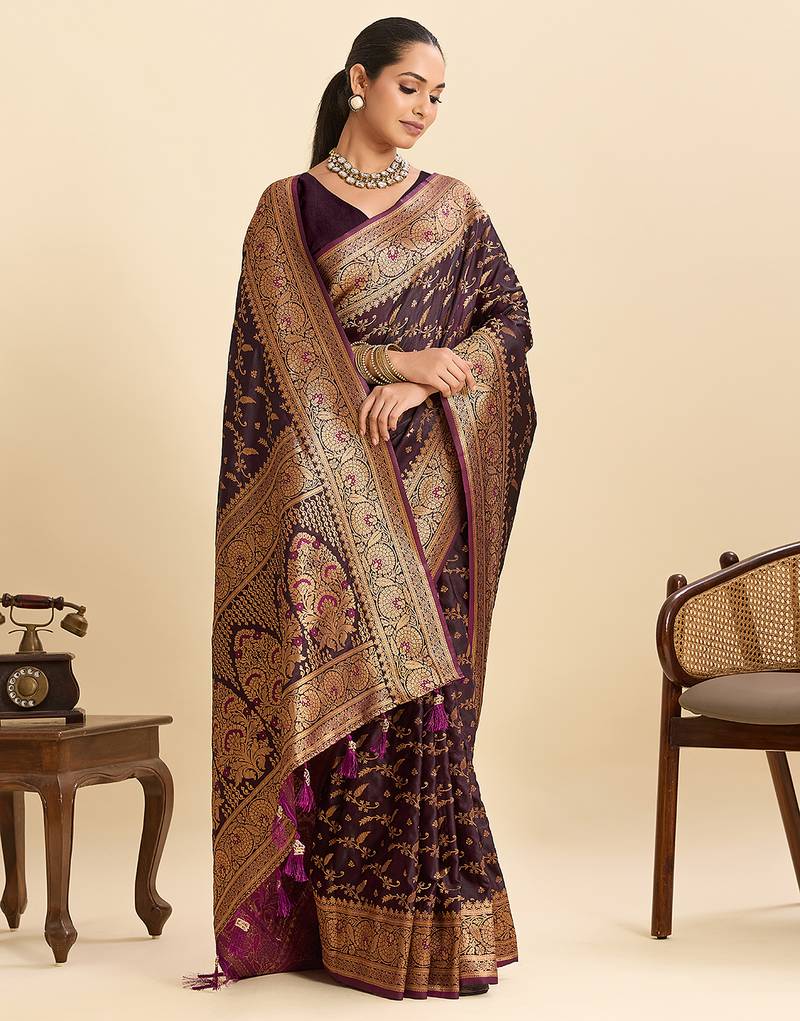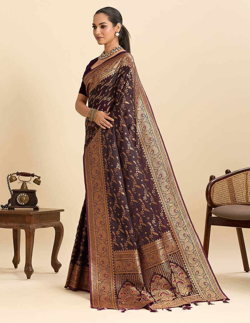 Soft litchi art silk banarasi art silk jacquard saree (nayanthara-wine)