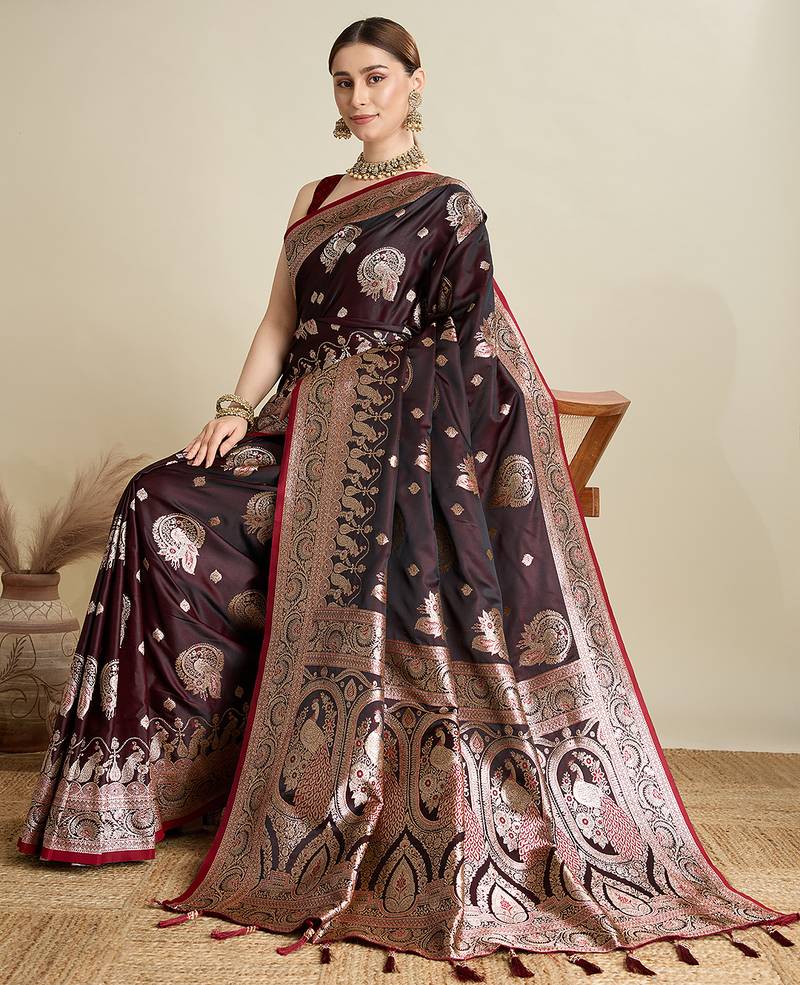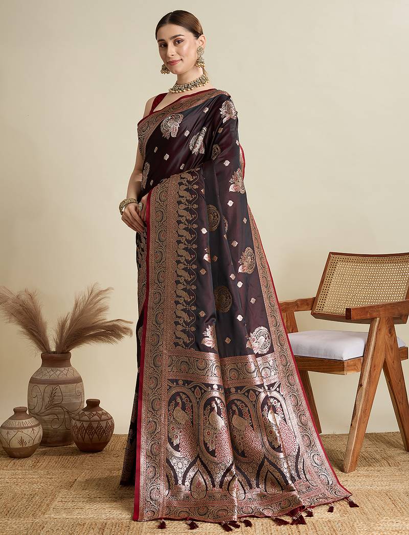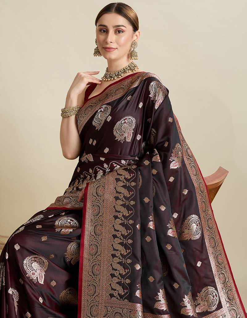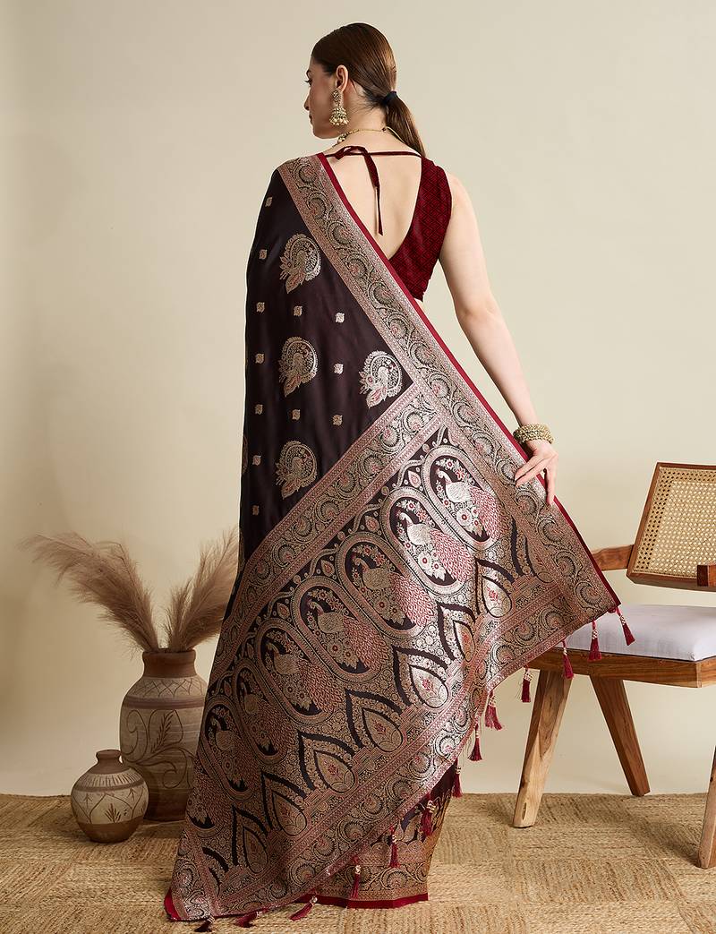 Soft litchi art silk banarasi art silk jacquard saree (str-rajgharana-01-maroon)