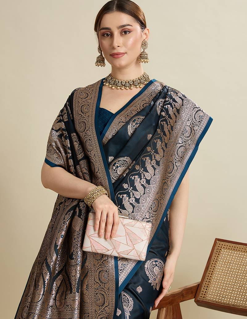 Soft litchi art silk banarasi art silk jacquard saree (str-rajgharana-01-navy)