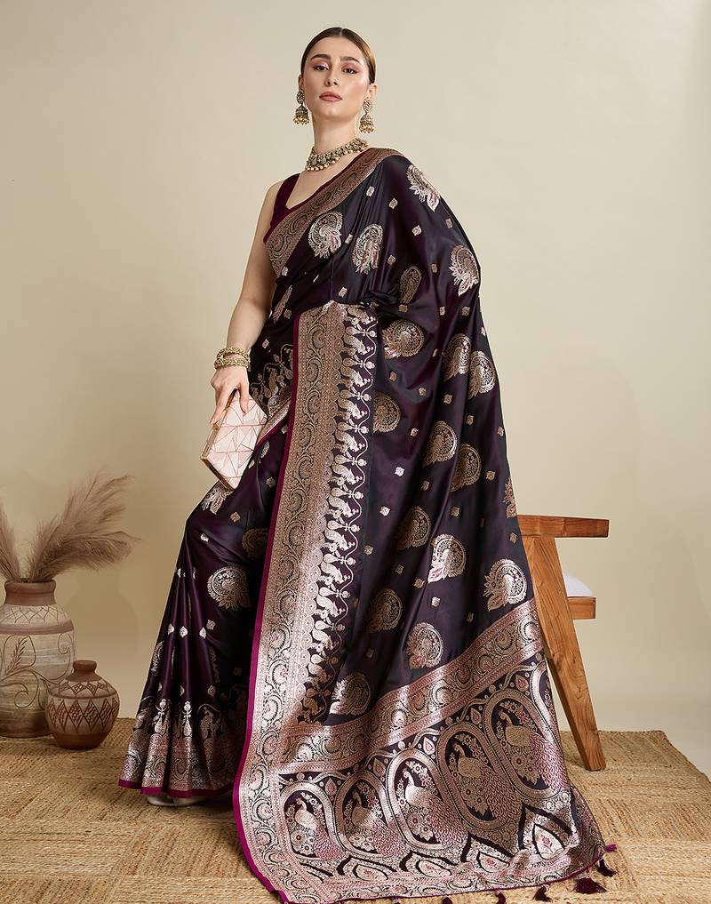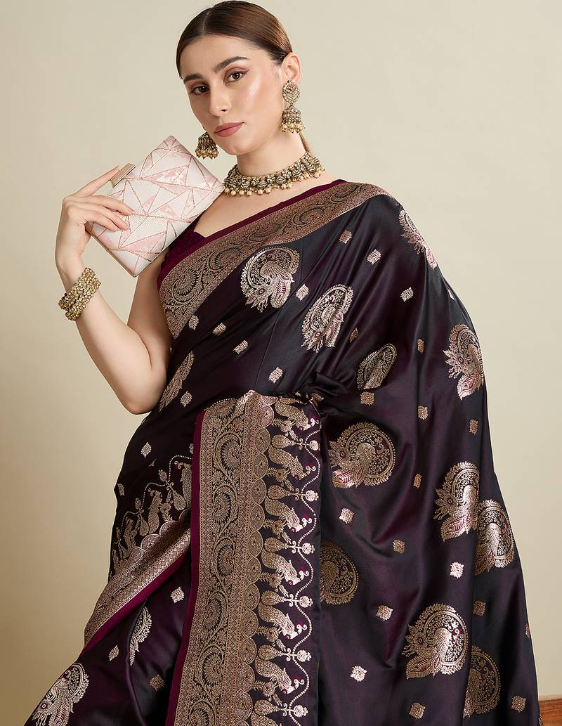 Soft litchi art silk banarasi art silk jacquard saree (str-rajgharana-01-wine)