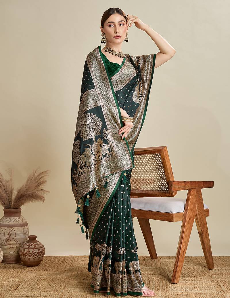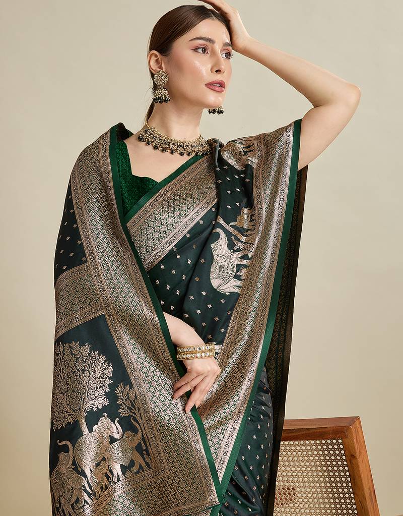 Soft litchi art silk banarasi art silk jacquard saree (str-rajgharana-05-green)