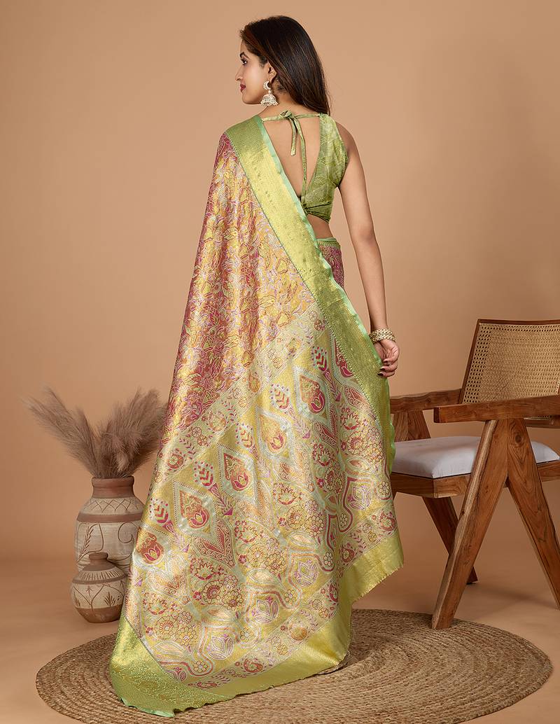 | Product Description | We Offers Kanjeevaram & Banarasi Softy Silk Saree With Rich Intricate Meenakari Golden Zari Jacquard Work At All Over Body, Border & Grand Pallu. Blouse, Border And Pallu Have Very Fine Contrast Color Matching With Saree Body. Saree & Blouse Material Is Litchi Silk Which Very Soft And Skin Friendly Material. This Saree Has A Length 6.30 Meter Which Includes 0.8 Meters Of The Blouse. These New Bollywood Designer Fashionable Saree For Women Can Be Used As Party Wear Saree, Festival Saree, Wedding Saree On Every Occasions. Product Colour May Slightly Very Due To Photographic Lighting Sources Or Your Monitor Settings. |