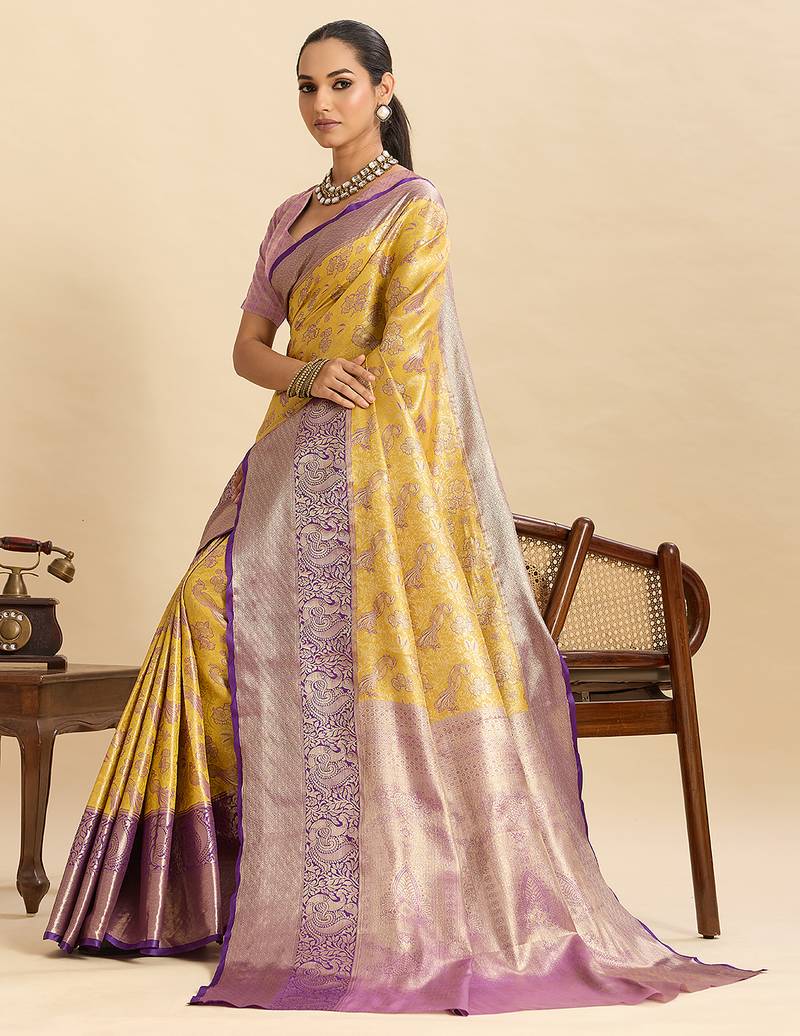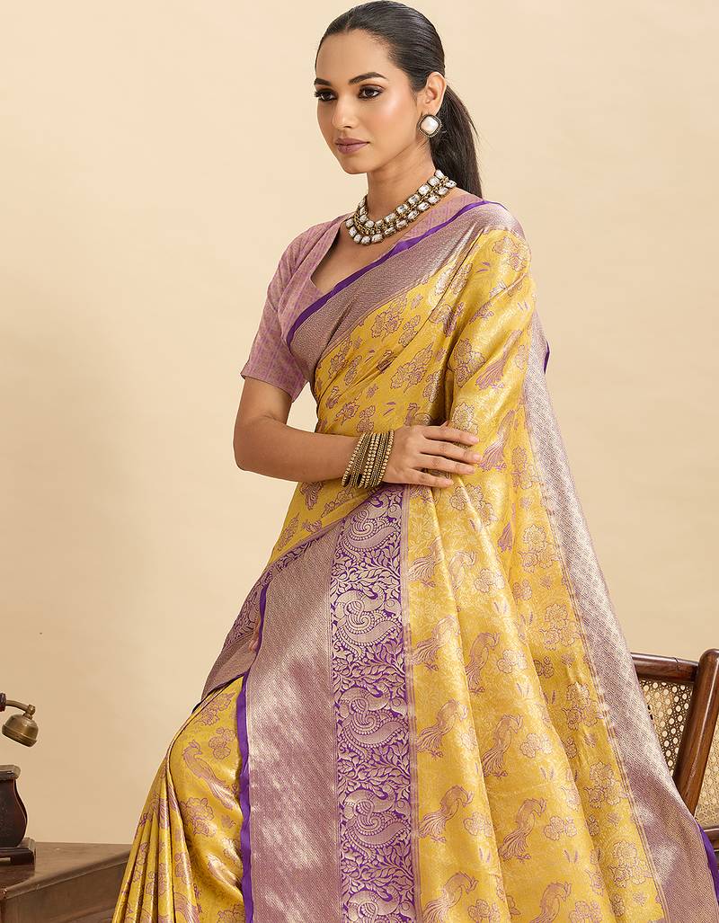 Soft litchi art silk kanjeevaram art silk jacquard saree (anarkali-yellow)
