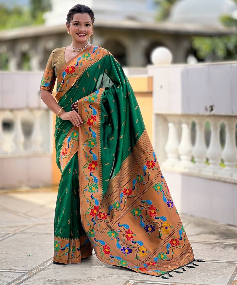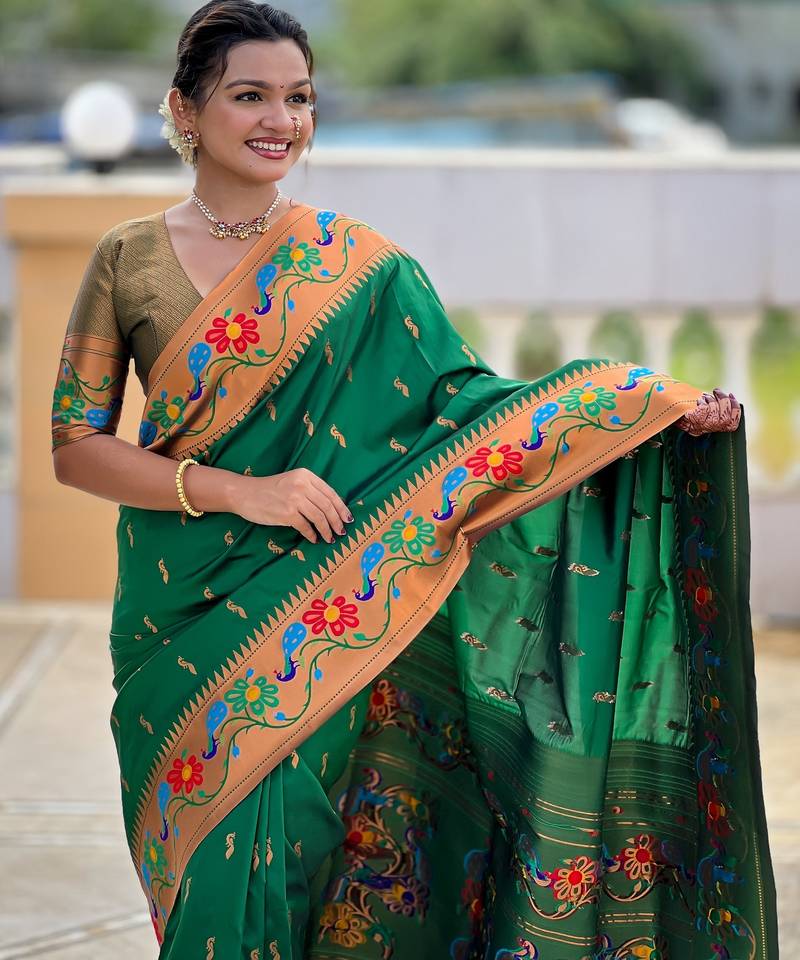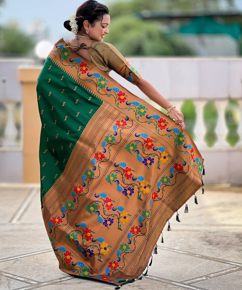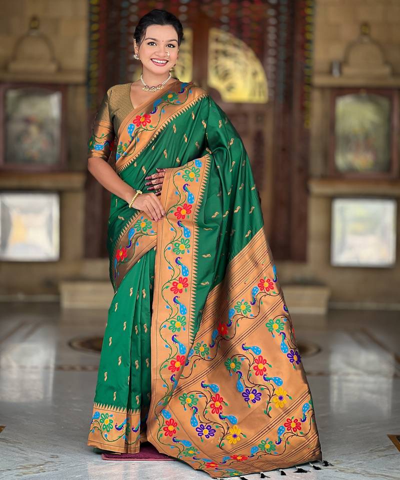 Soft litchi art silk paithani jacquard saree (anuradha-paithani-green)