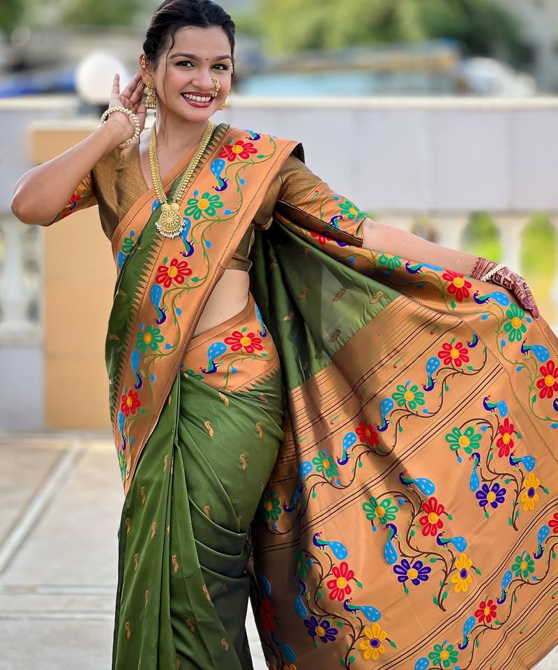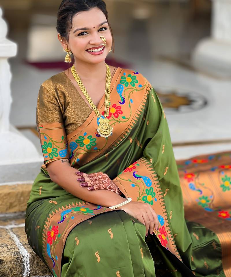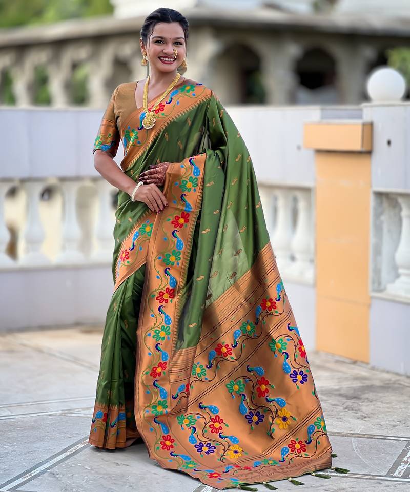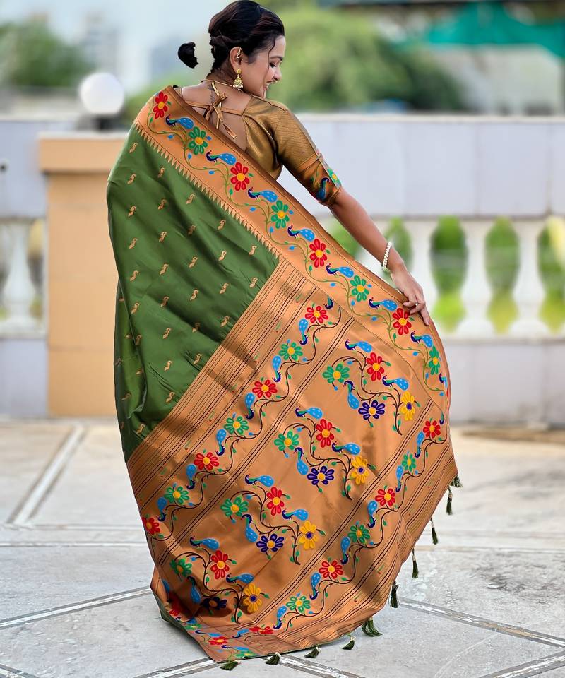 Soft litchi art silk paithani jacquard saree (anuradha-paithani-mahendi)