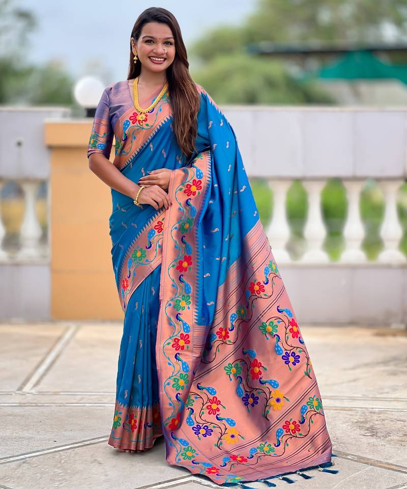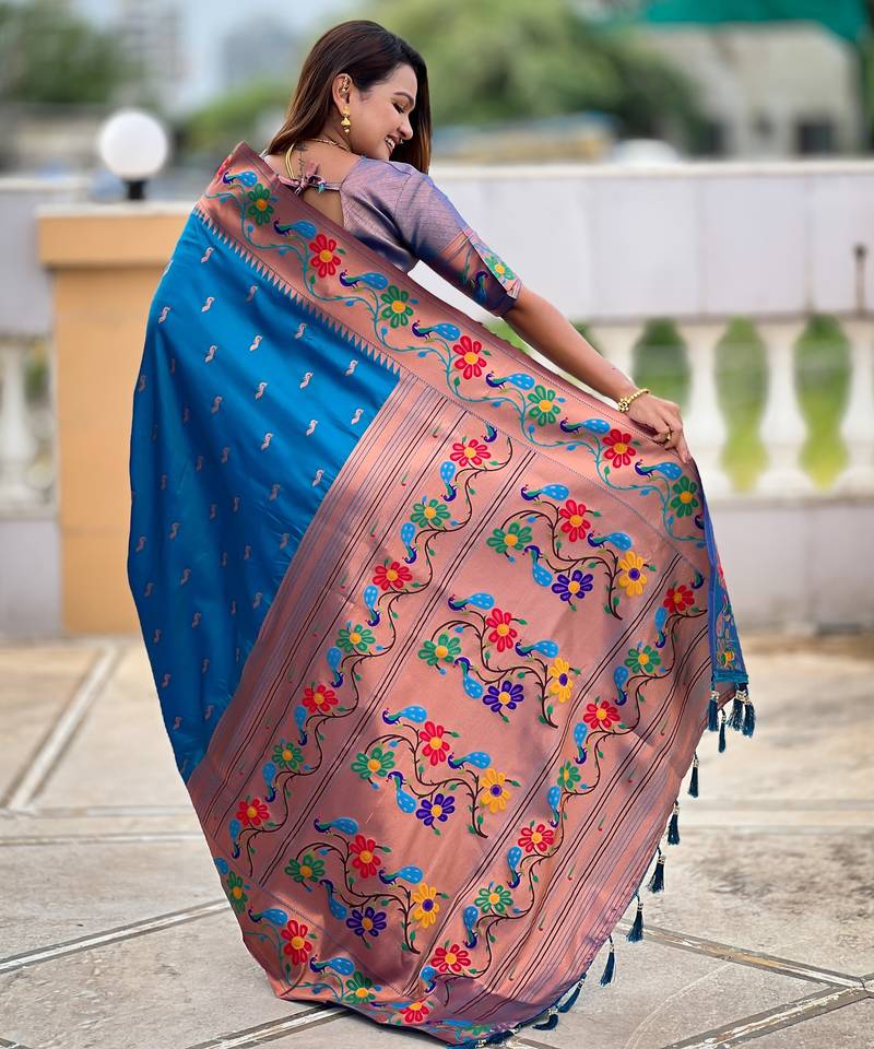 Soft litchi art silk paithani jacquard saree (anuradha-paithani-sky-blue)