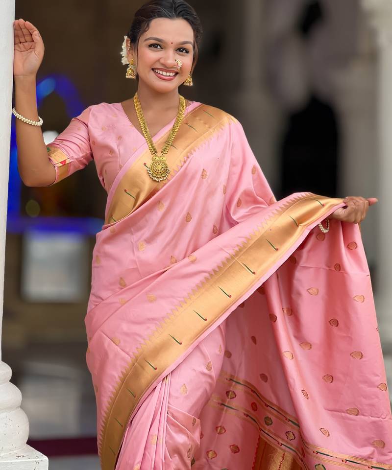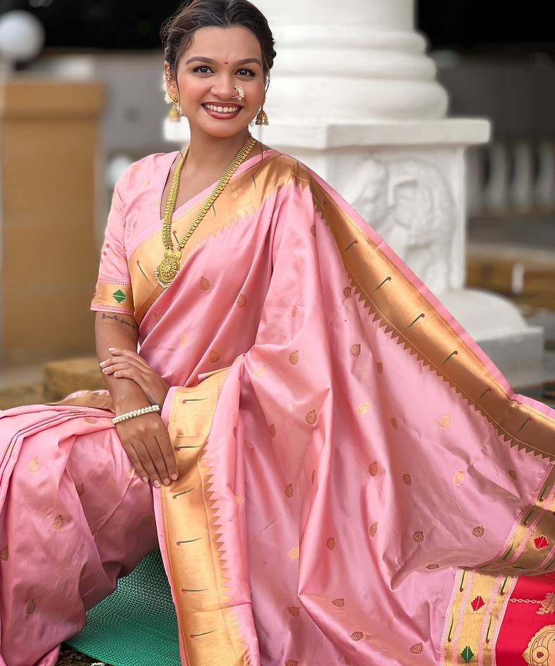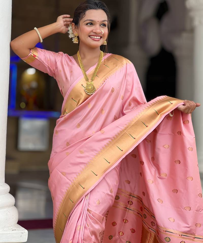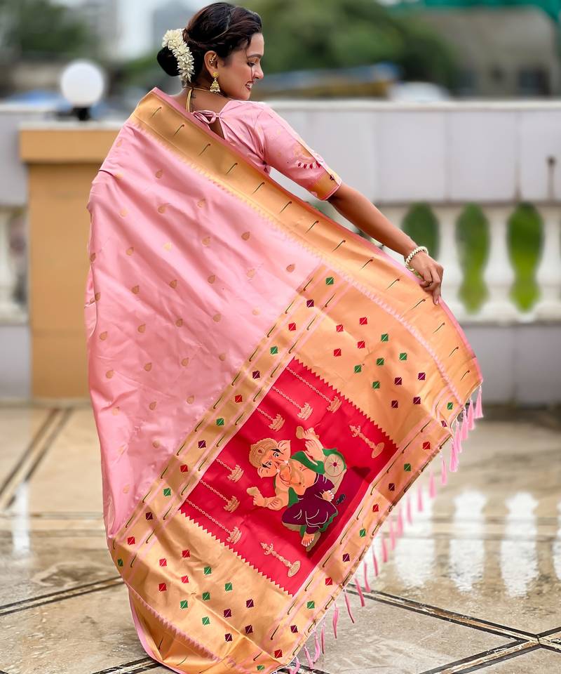 Soft litchi art silk paithani jacquard saree (ganpati-paithani-baby-pink)
