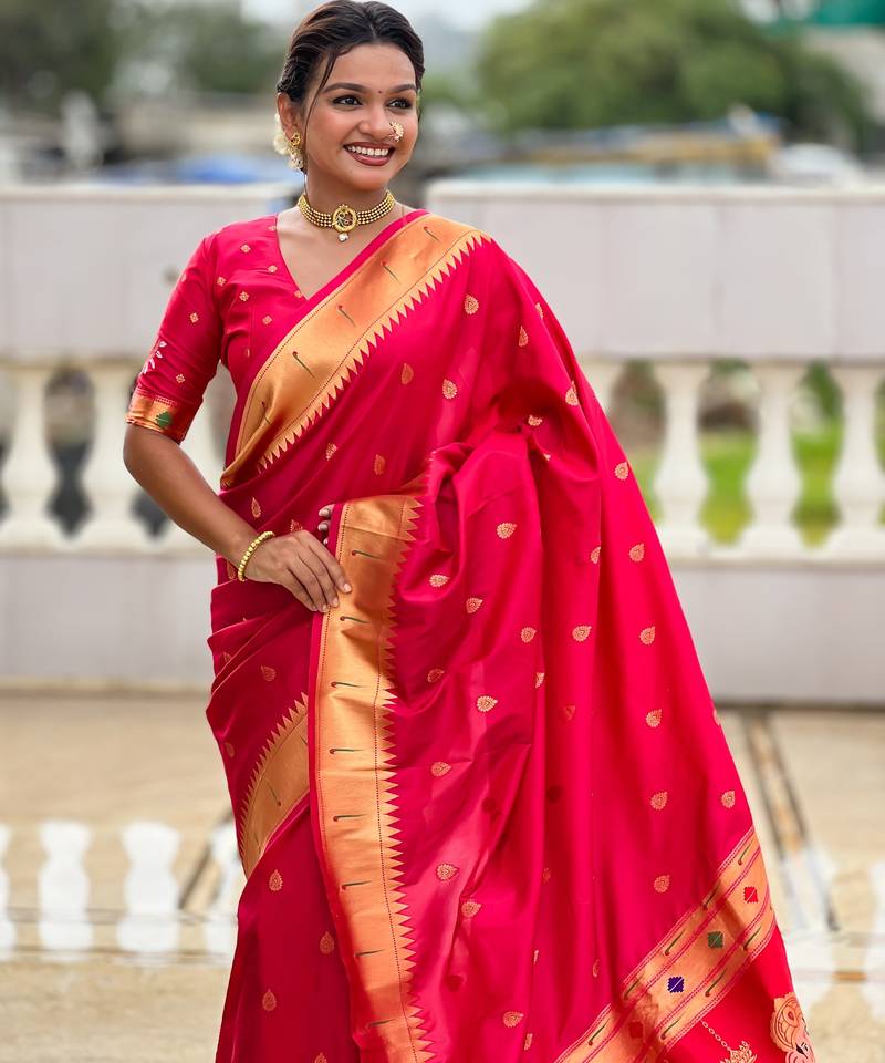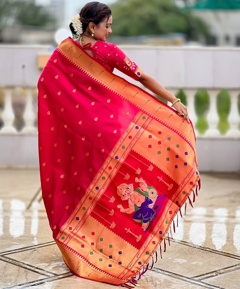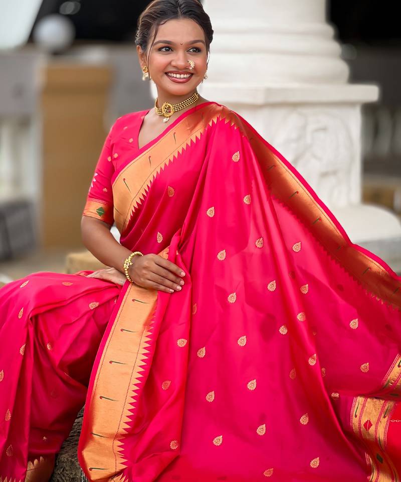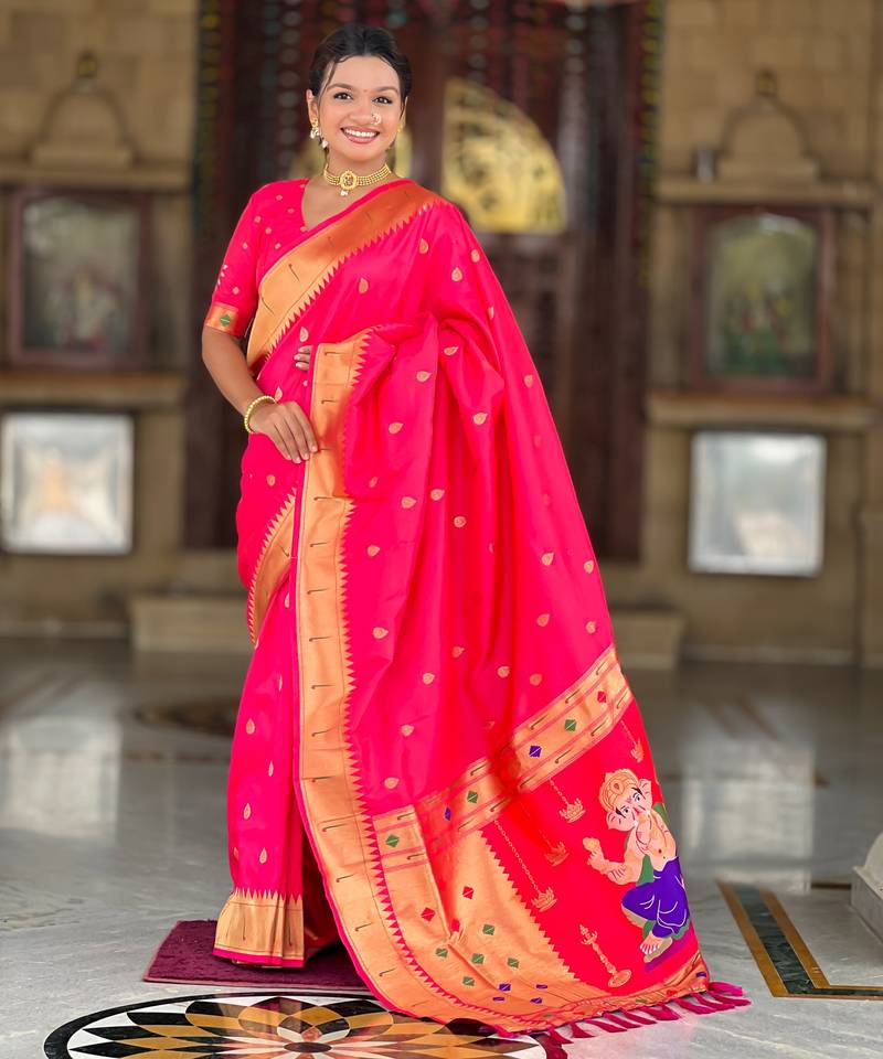 Soft litchi art silk paithani jacquard saree (ganpati-paithani-rani-pink)