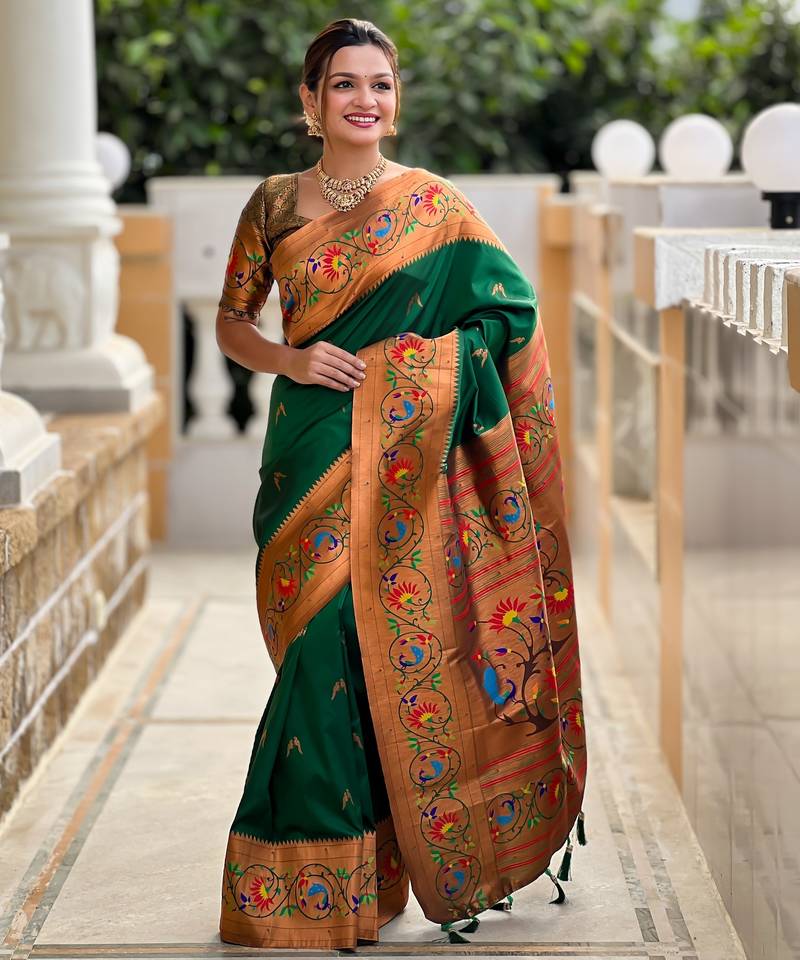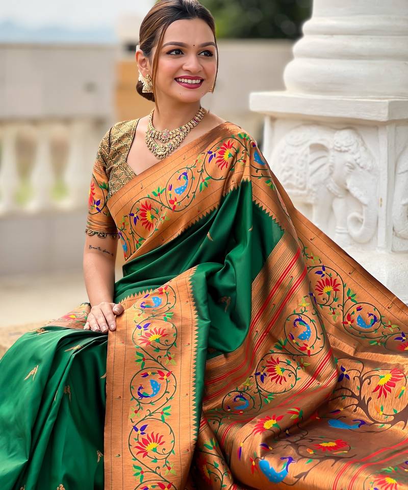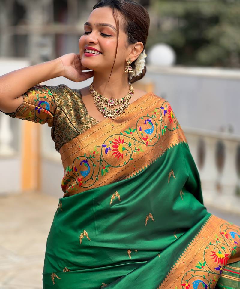 Soft litchi art silk paithani jacquard saree (harmony-paithani-2-green)