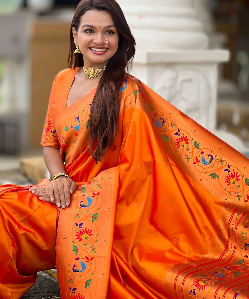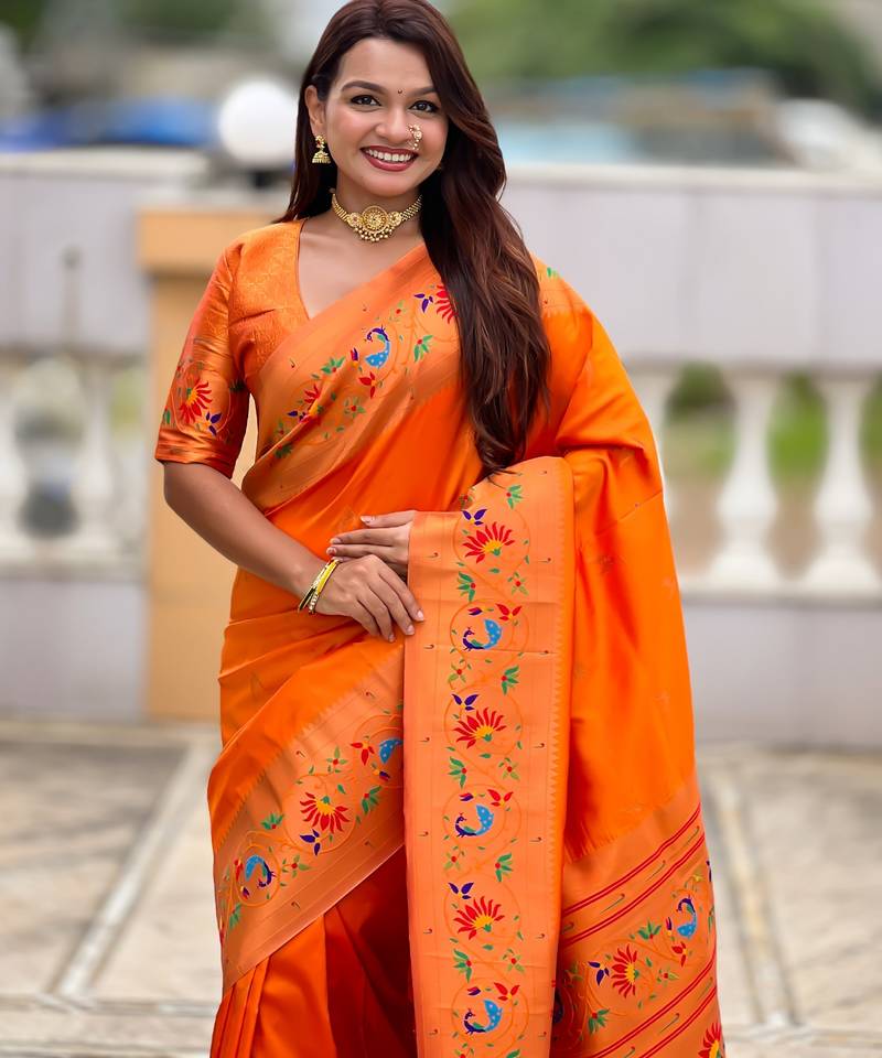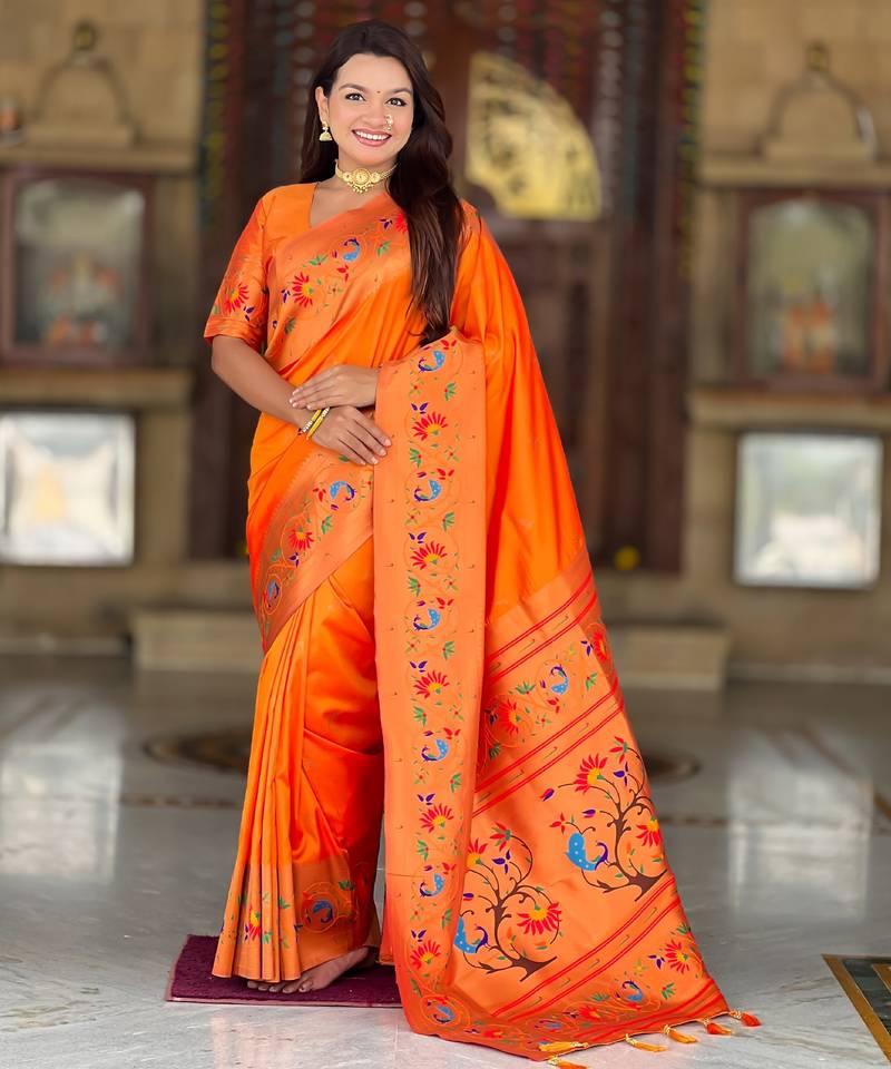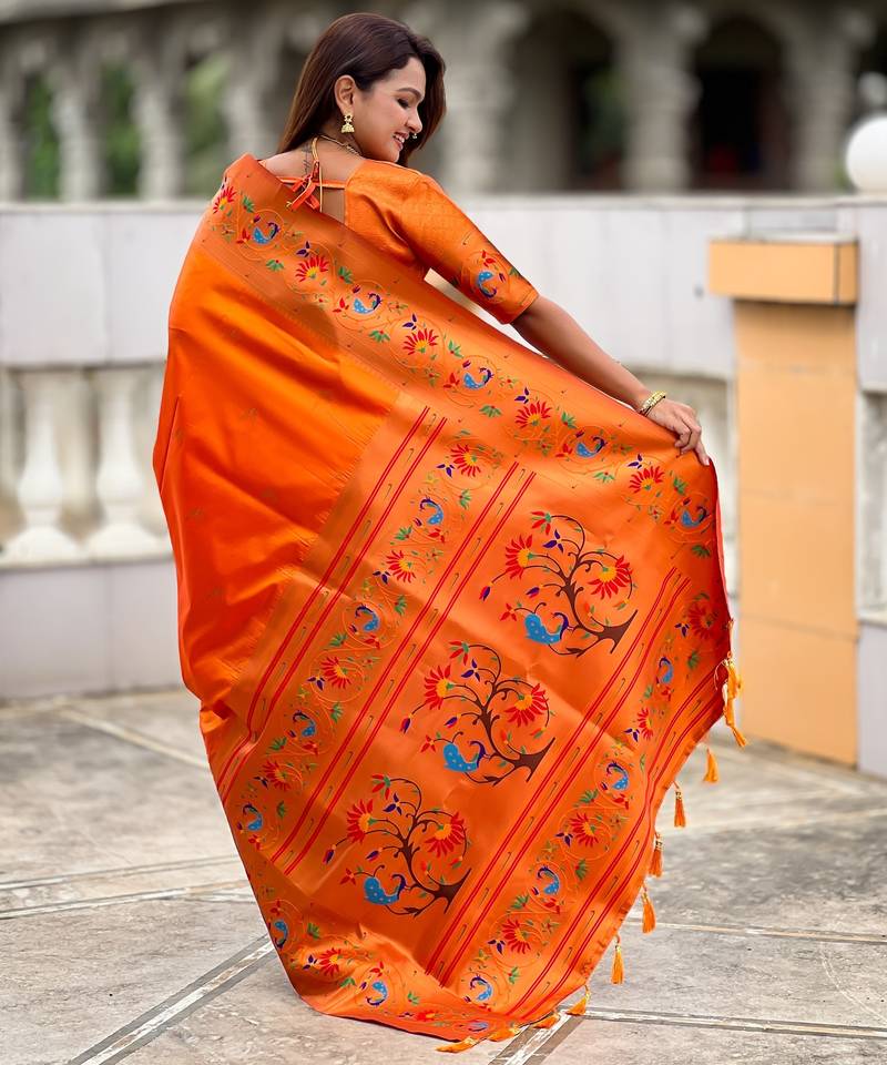 Soft litchi art silk paithani jacquard saree (harmony-paithani-2-orange)