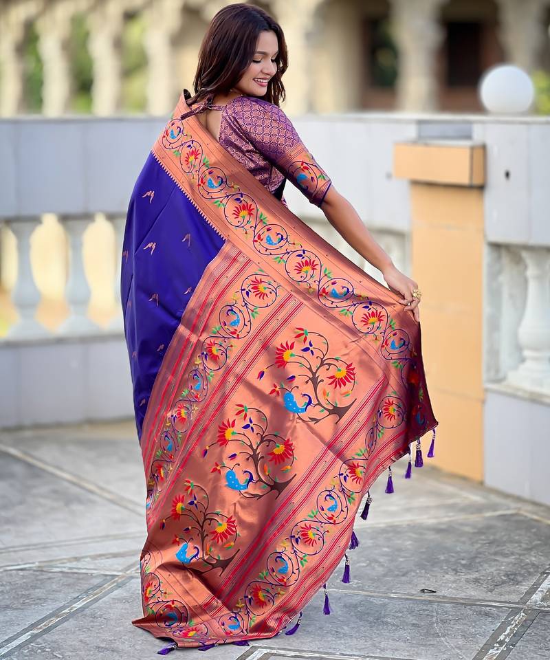 Soft litchi art silk paithani jacquard saree (harmony-paithani-2-violet)