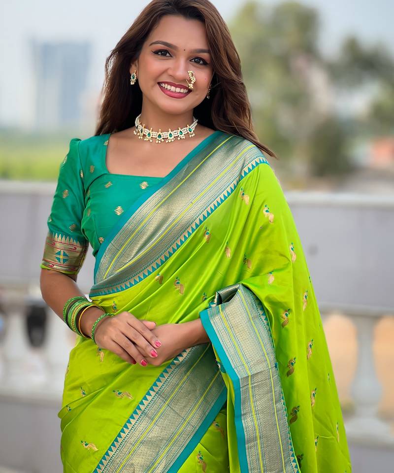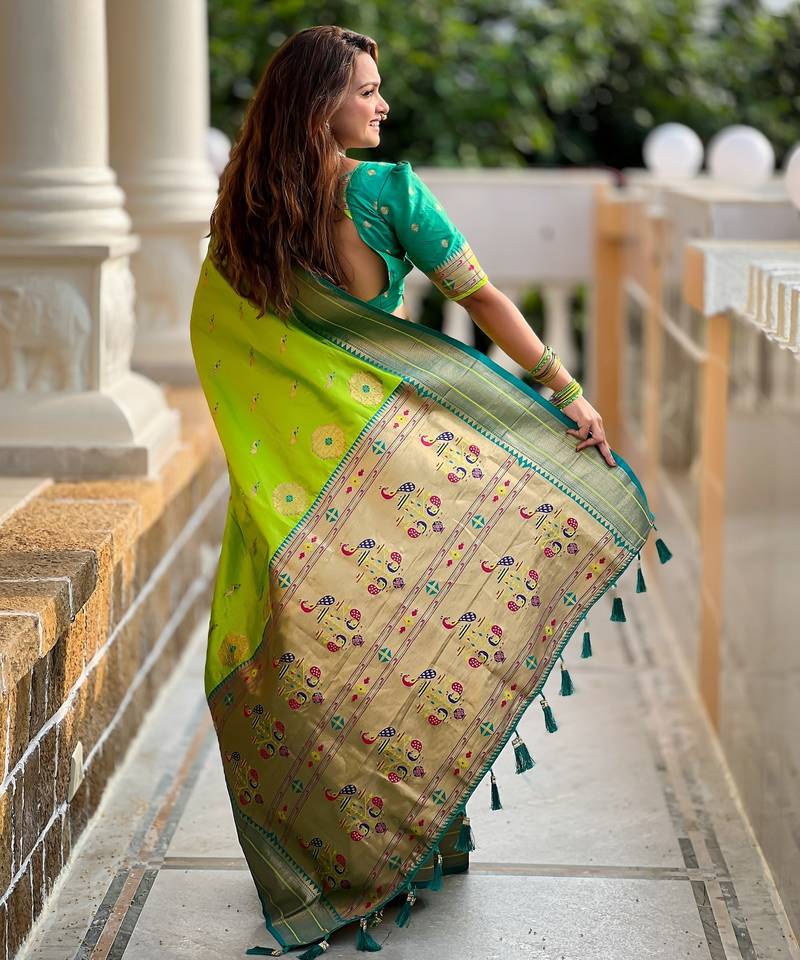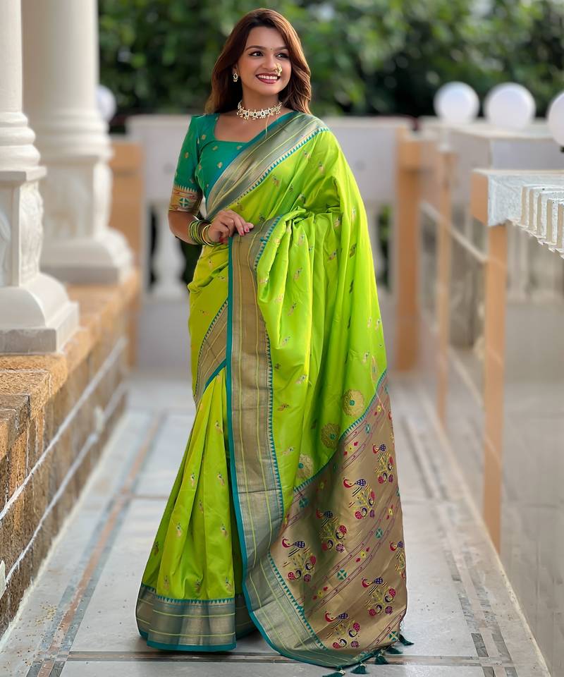 Soft litchi art silk paithani jacquard saree (peacock-paithani-parrot)