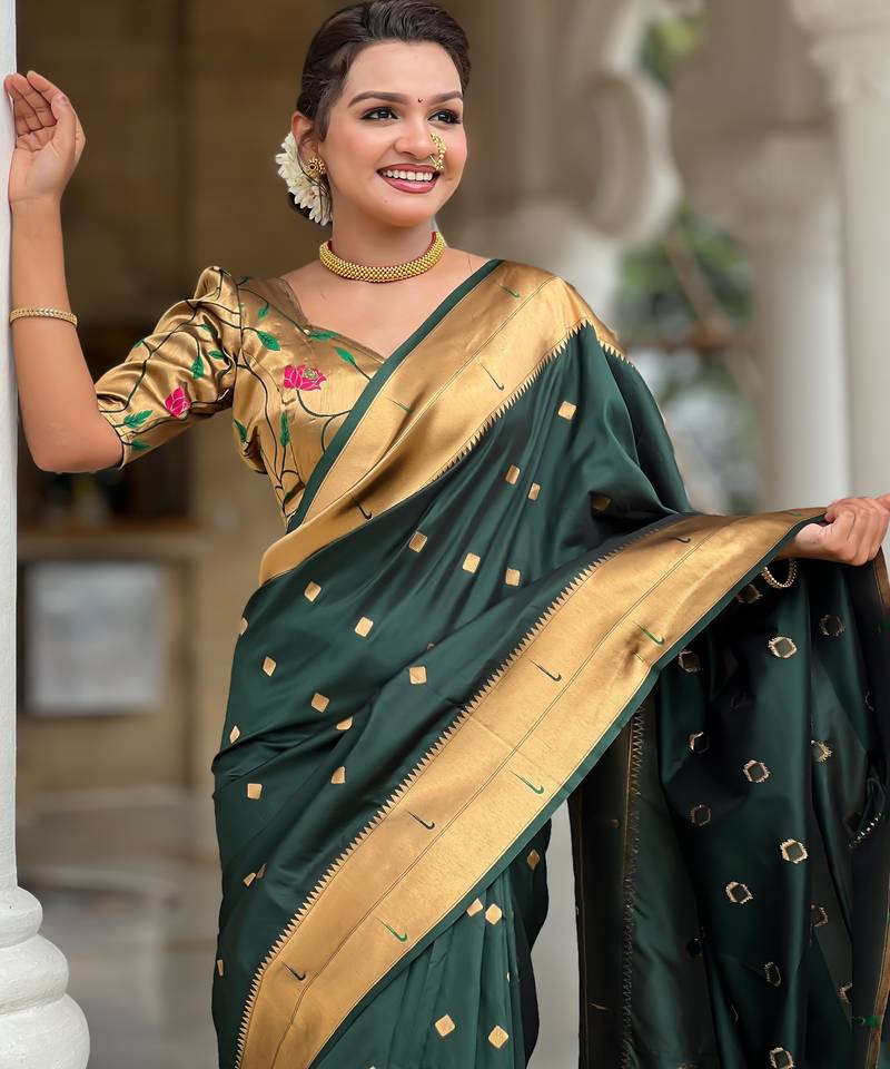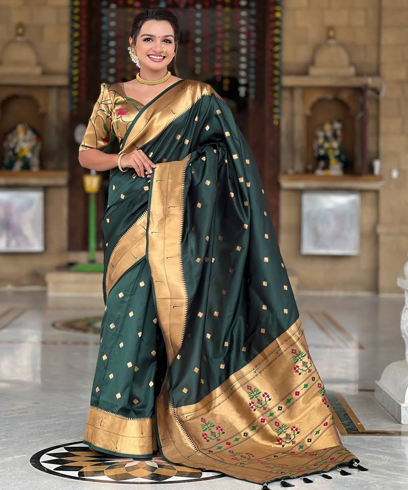 Soft litchi art silk paithani jacquard saree (raffel-paithani-b-green)