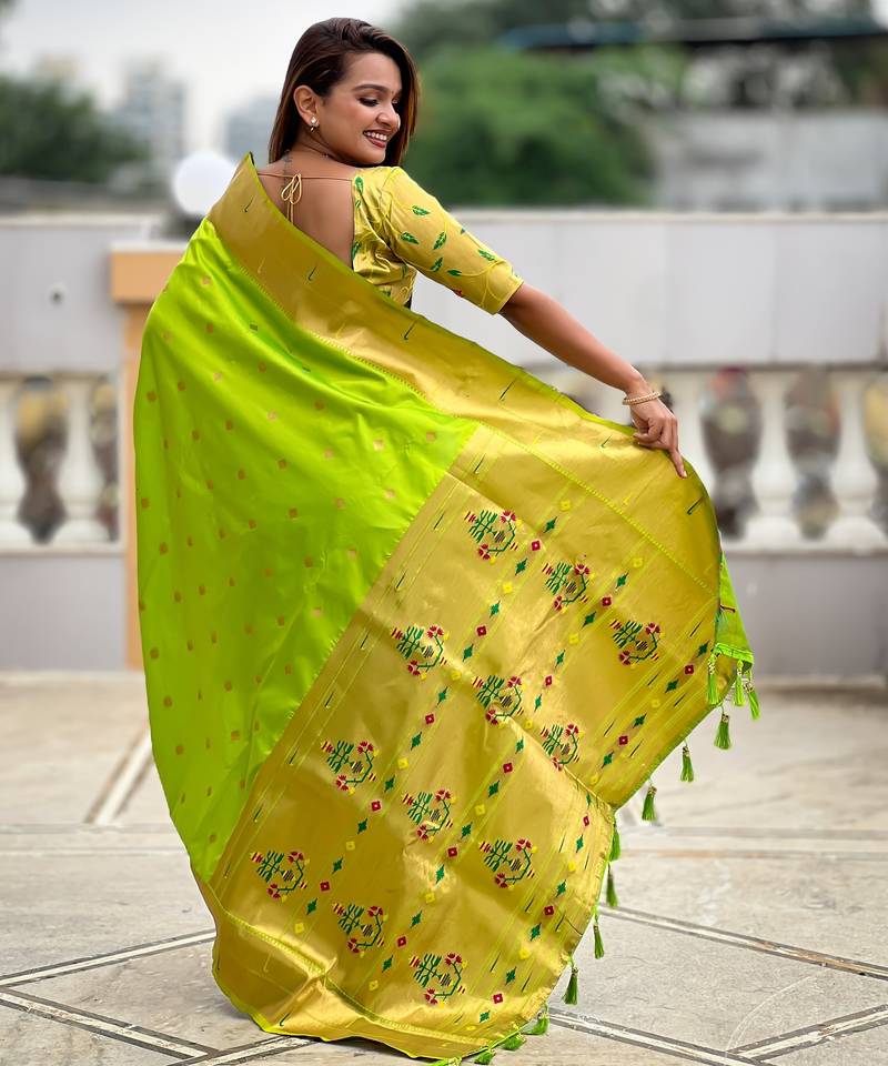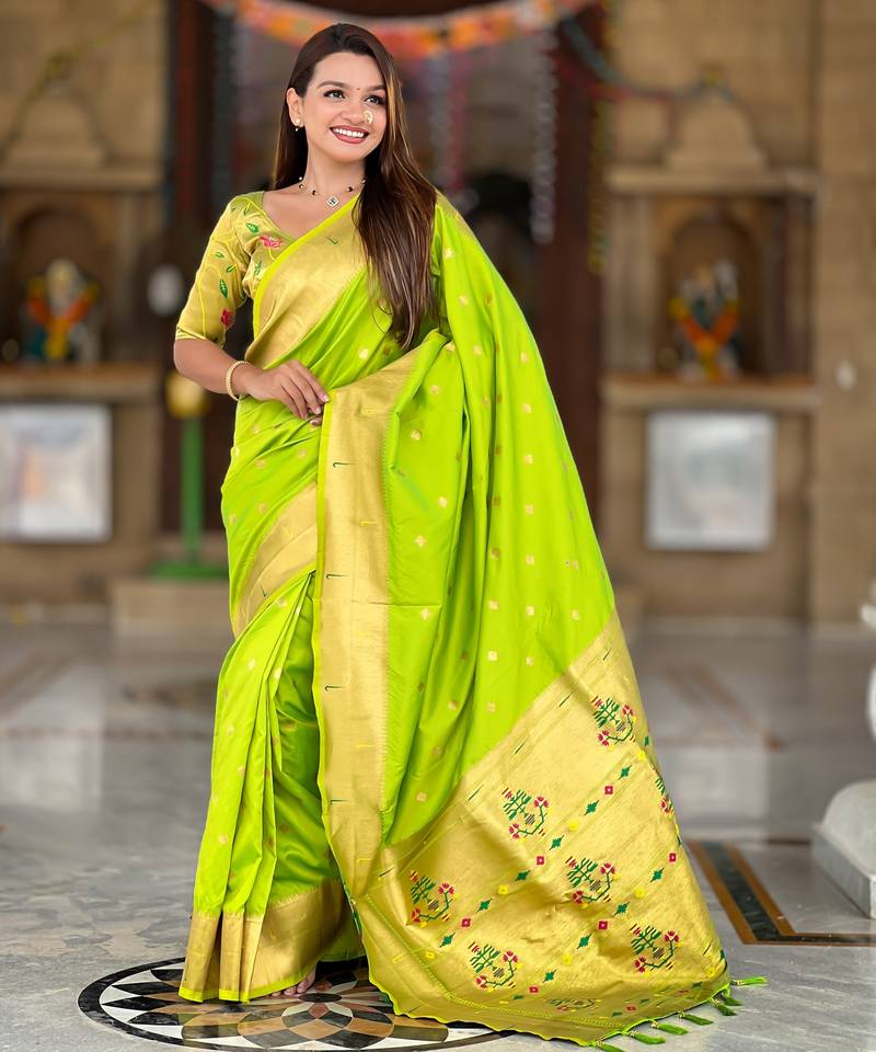 Soft litchi art silk paithani jacquard saree (raffel-paithani-parrot)