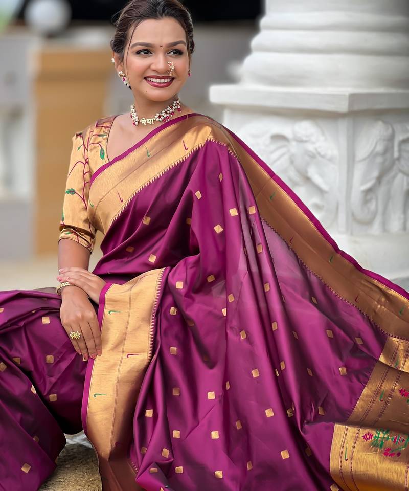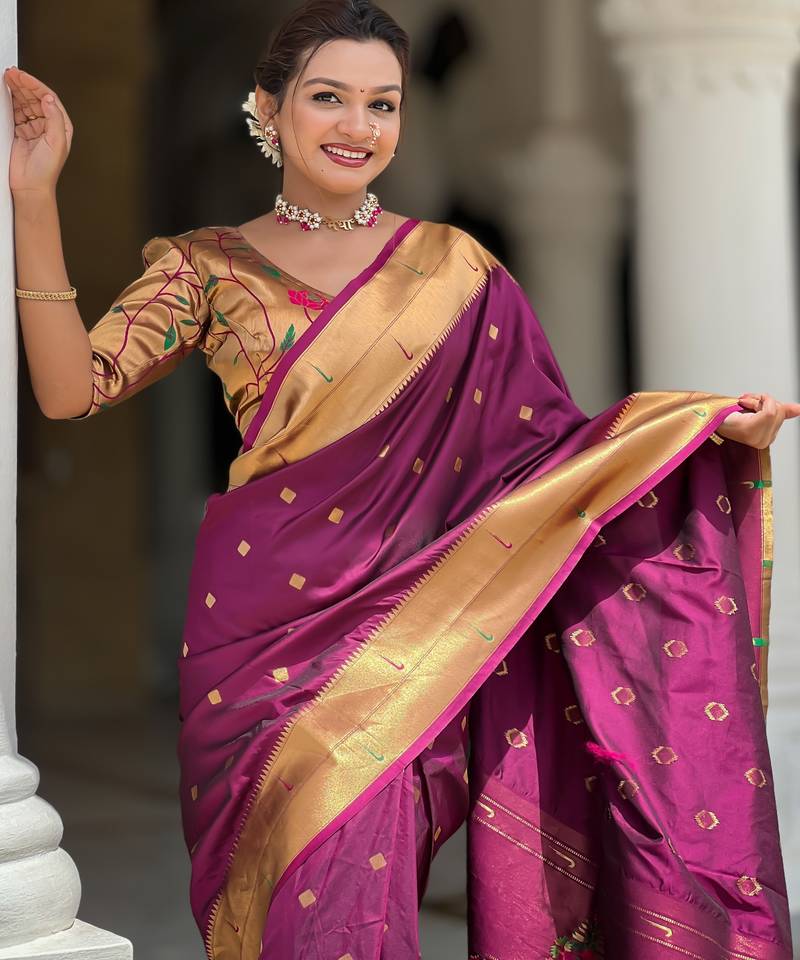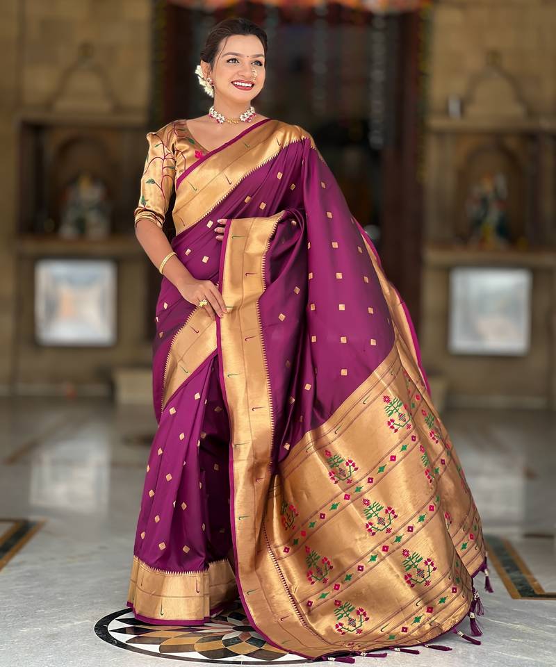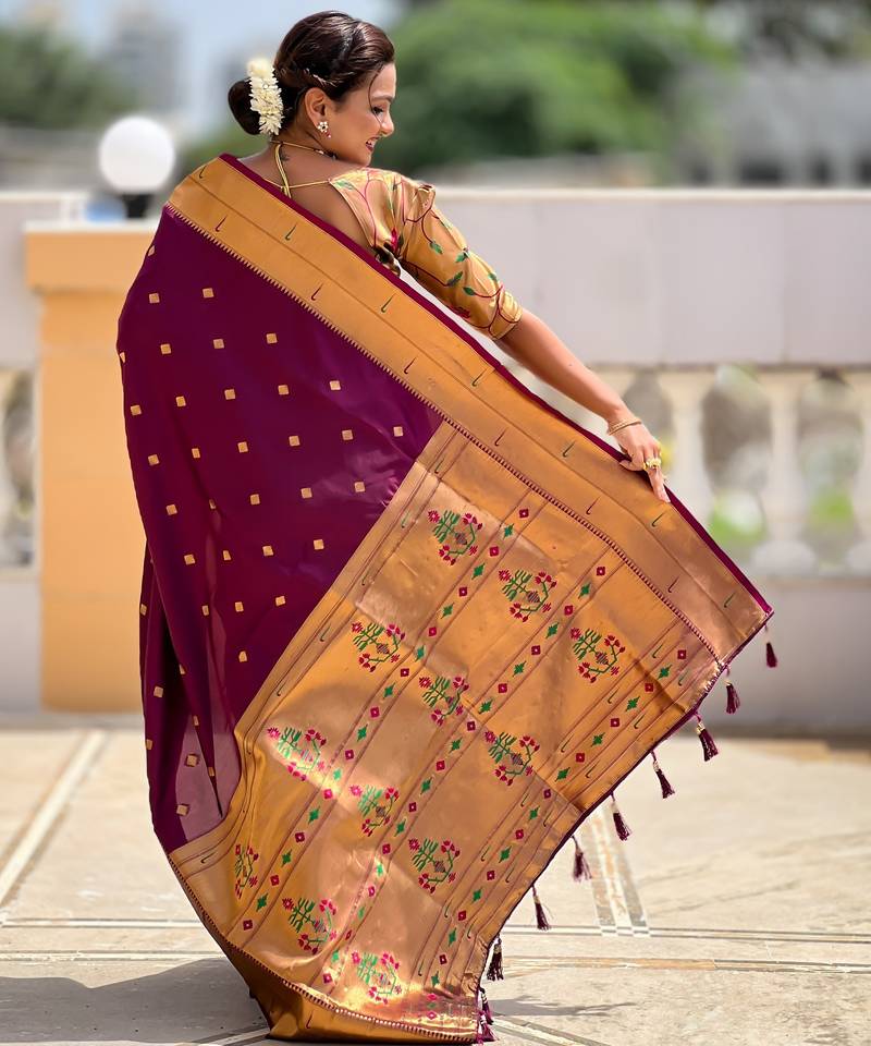 Soft litchi art silk paithani jacquard saree (raffel-paithani-wine)