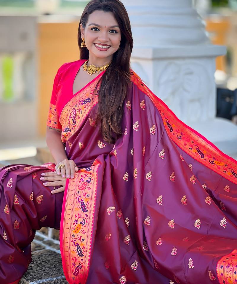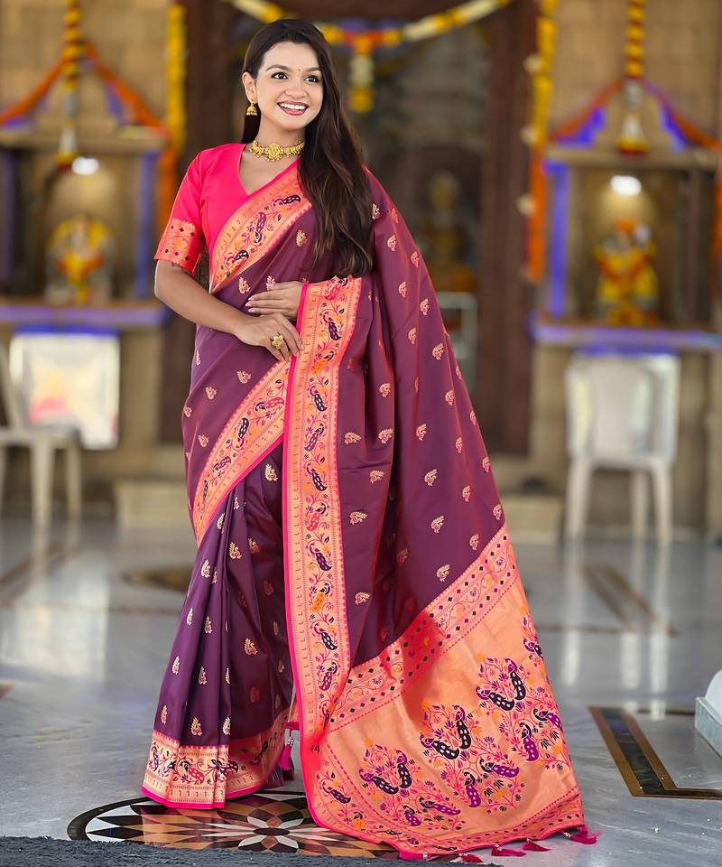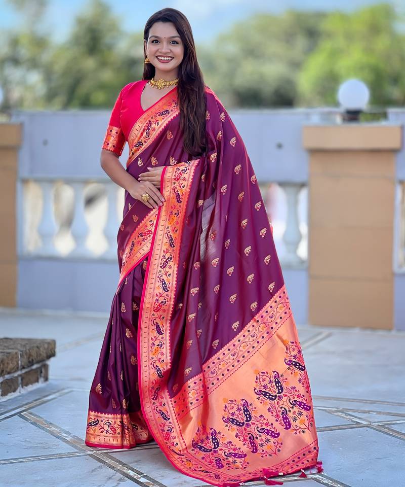 Soft litchi art silk paithani jacquard saree (royal-paithani-1-wine)