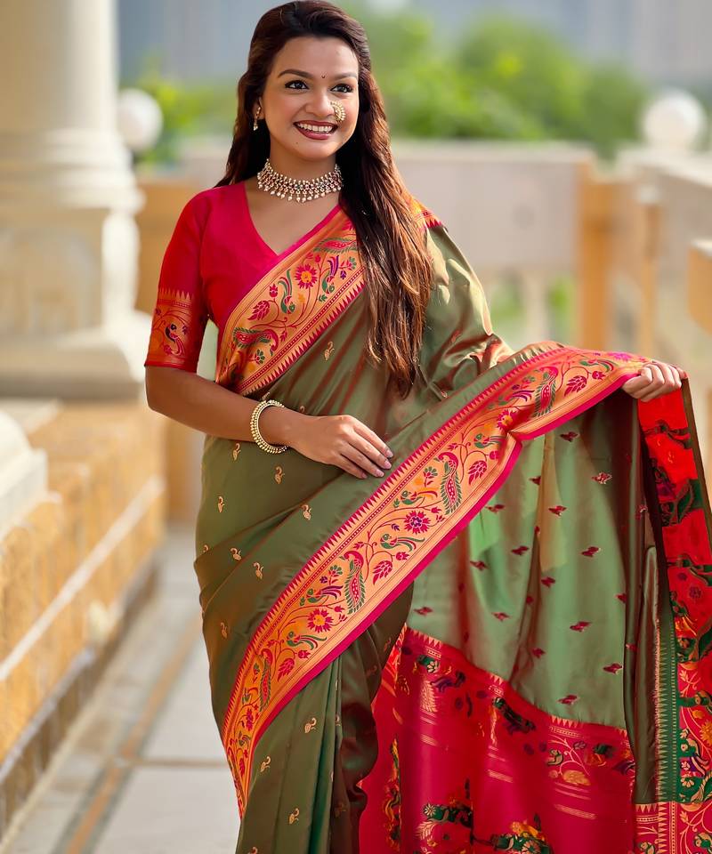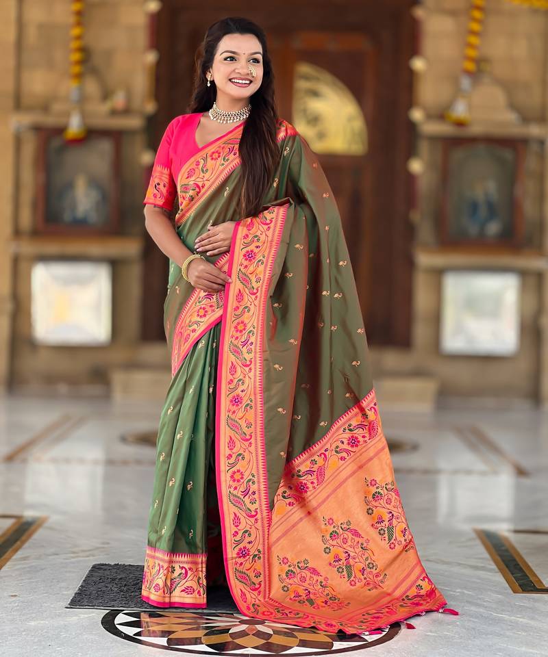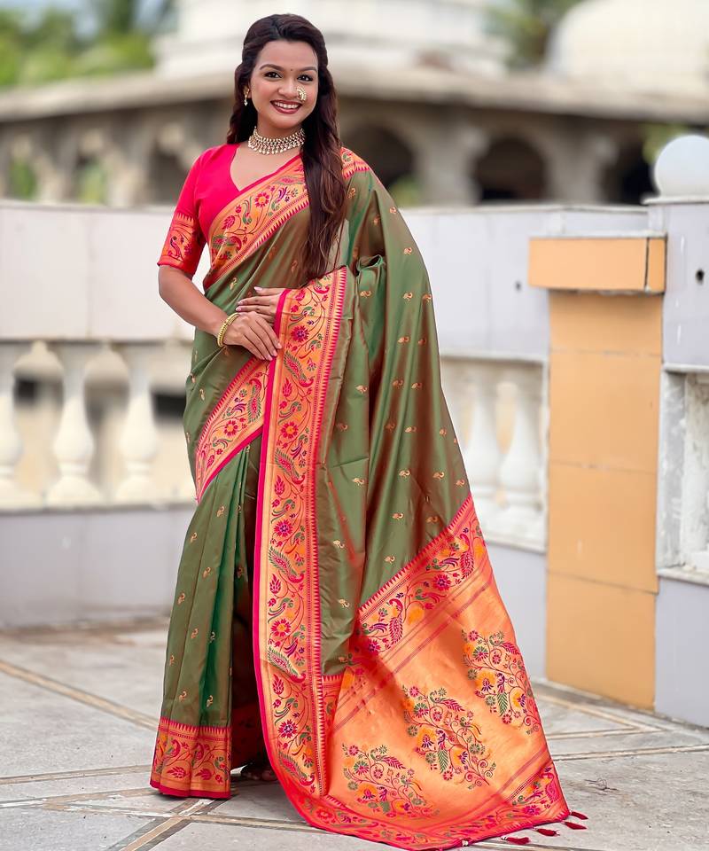 Soft litchi art silk paithani jacquard saree (royal-paithani-2-mahendi)