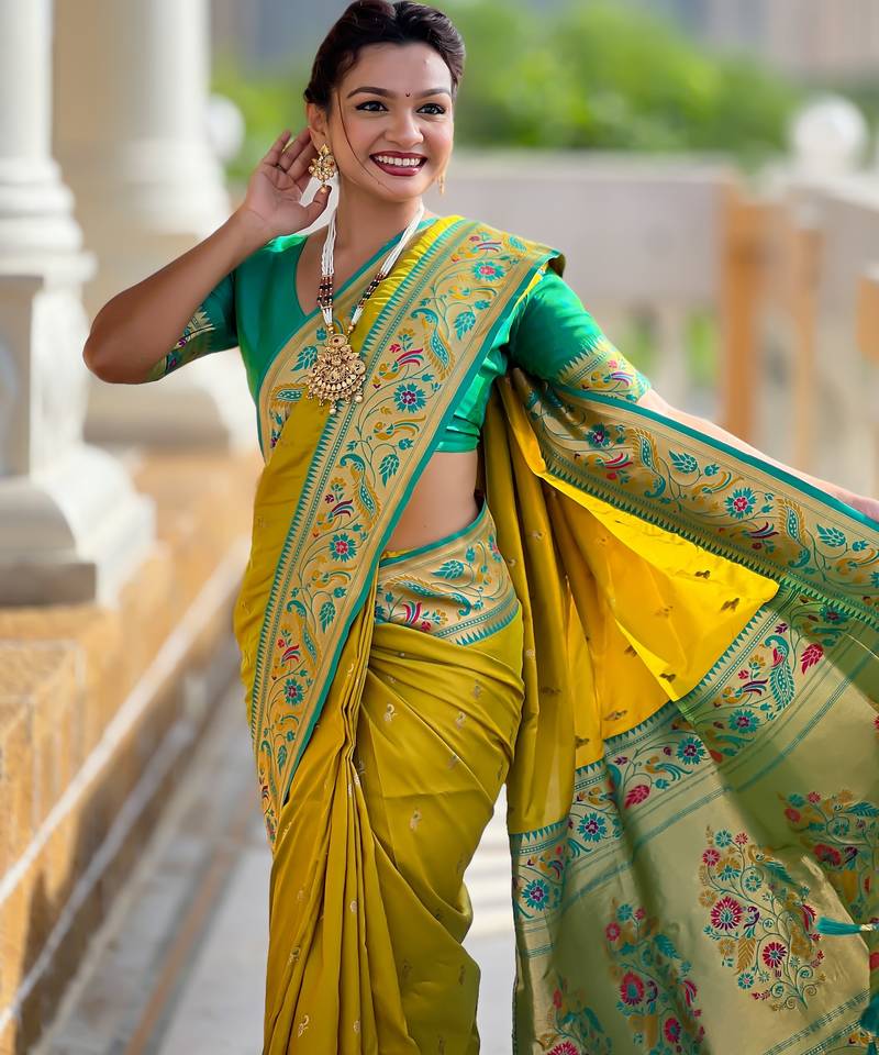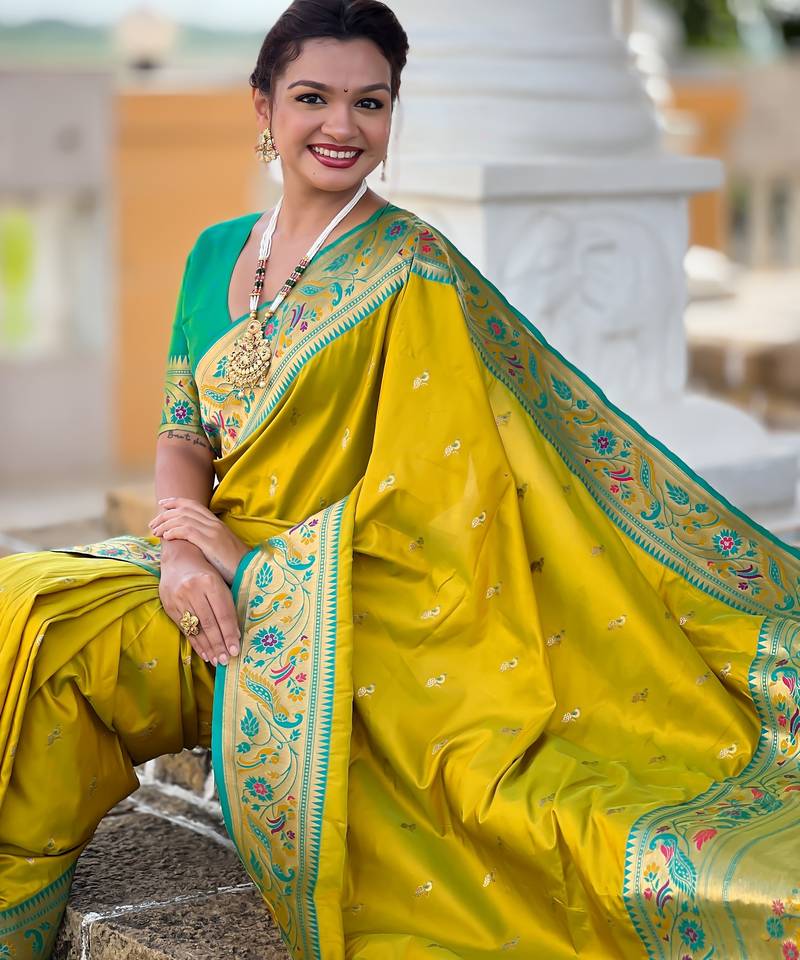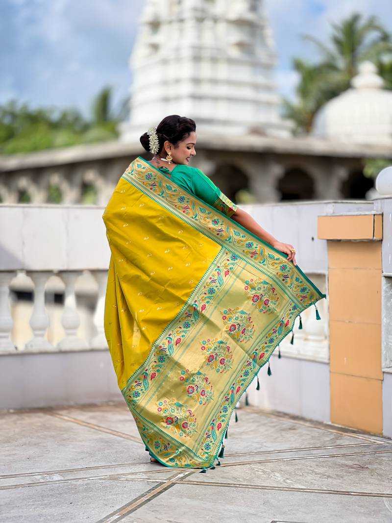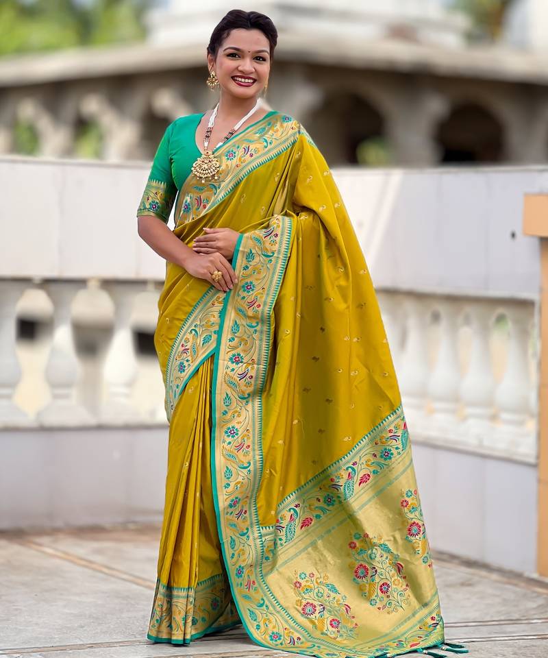 Soft litchi art silk paithani jacquard saree (royal-paithani-2-parrot-green)