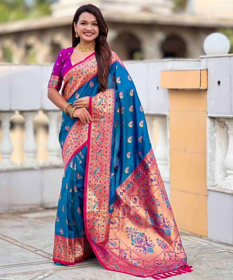 | Product Name | Soft Litchi Art Silk Paithani Jacquard Saree (Sparkal Paithani Firozi) | |