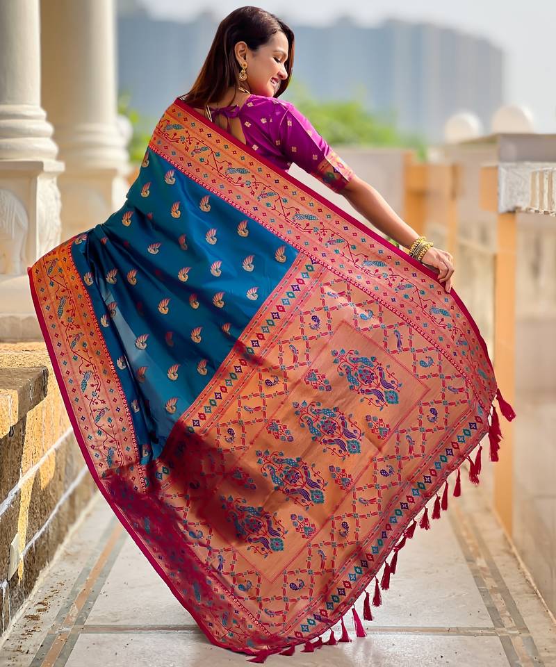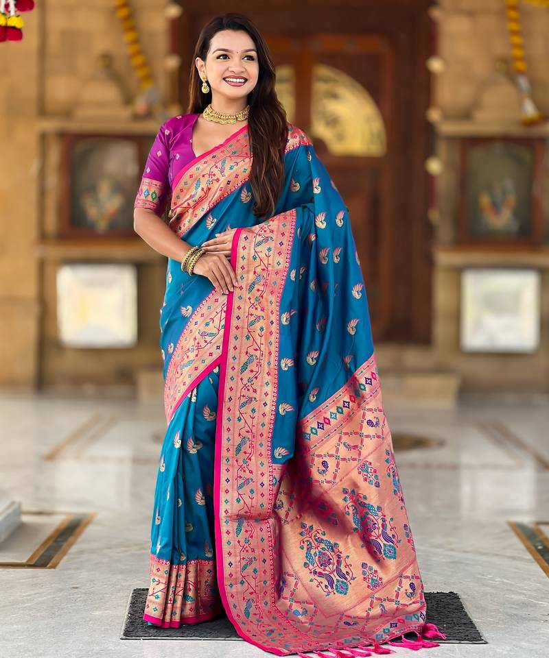 Soft litchi art silk paithani jacquard saree (sparkal-paithani-firozi)