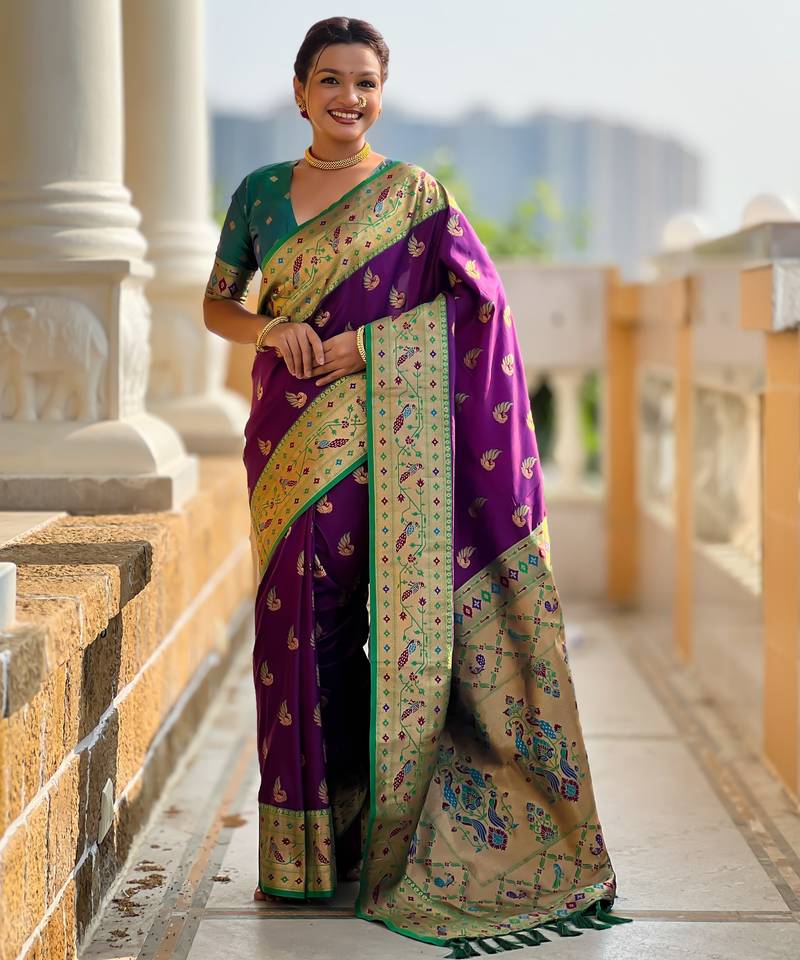 | Product Description | We Offers Paithani Softy Silk Saree With Rich Intricate Meenakari Golden Zari Jacquard Work At All Over Body, Border & Grand Pallu. Blouse, Border And Pallu Have Very Fine Contrast Color Matching With Saree Body. Saree & Blouse Material Is Litchi Silk Which Very Soft And Skin Friendly Material. Saree Has Beautiful Zalar (Tessel) Work At Pallu. This Saree Has A Length 6.30 Meter Which Includes 0.8 Meters Of The Blouse. These New Bollywood Designer Fashionable Saree For Women Can Be Used As Party Wear Saree, Festival Saree, Wedding Saree On Every Occasions. Product Colour May Slightly Very Due To Photographic Lighting Sources Or Your Monitor Settings. |