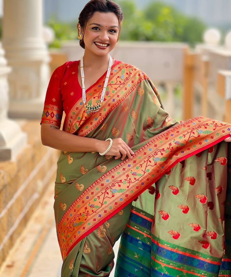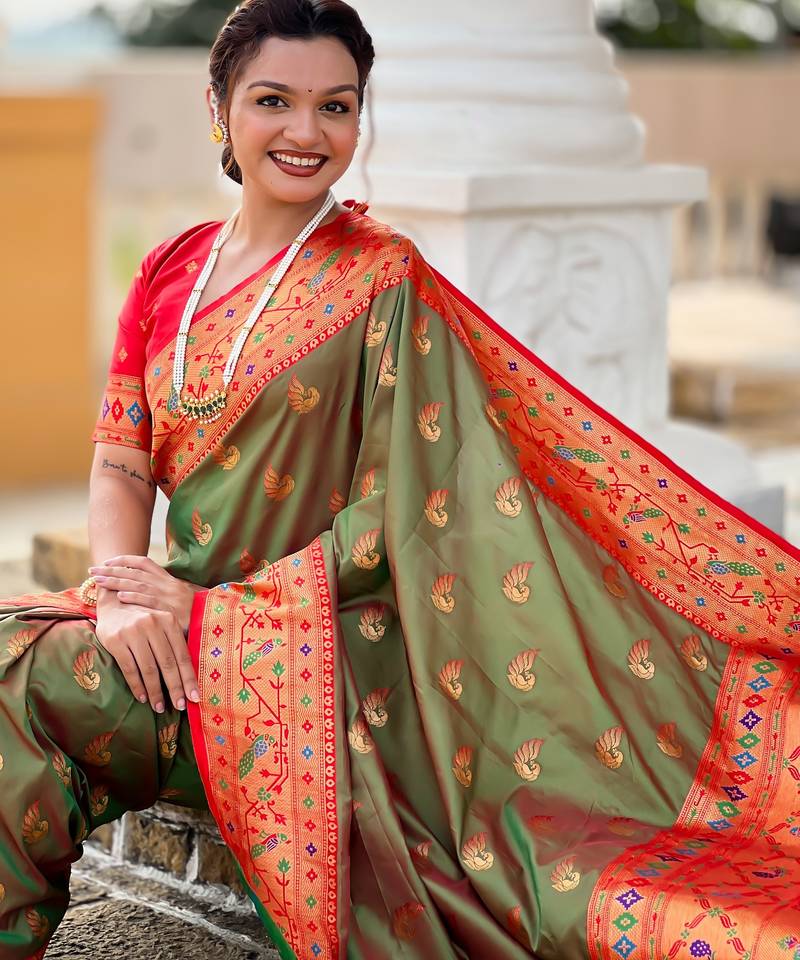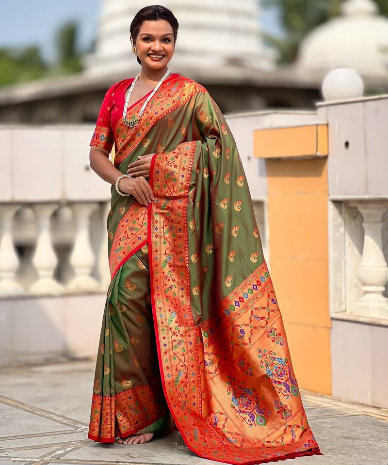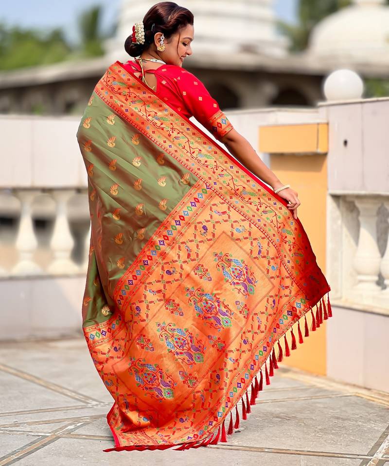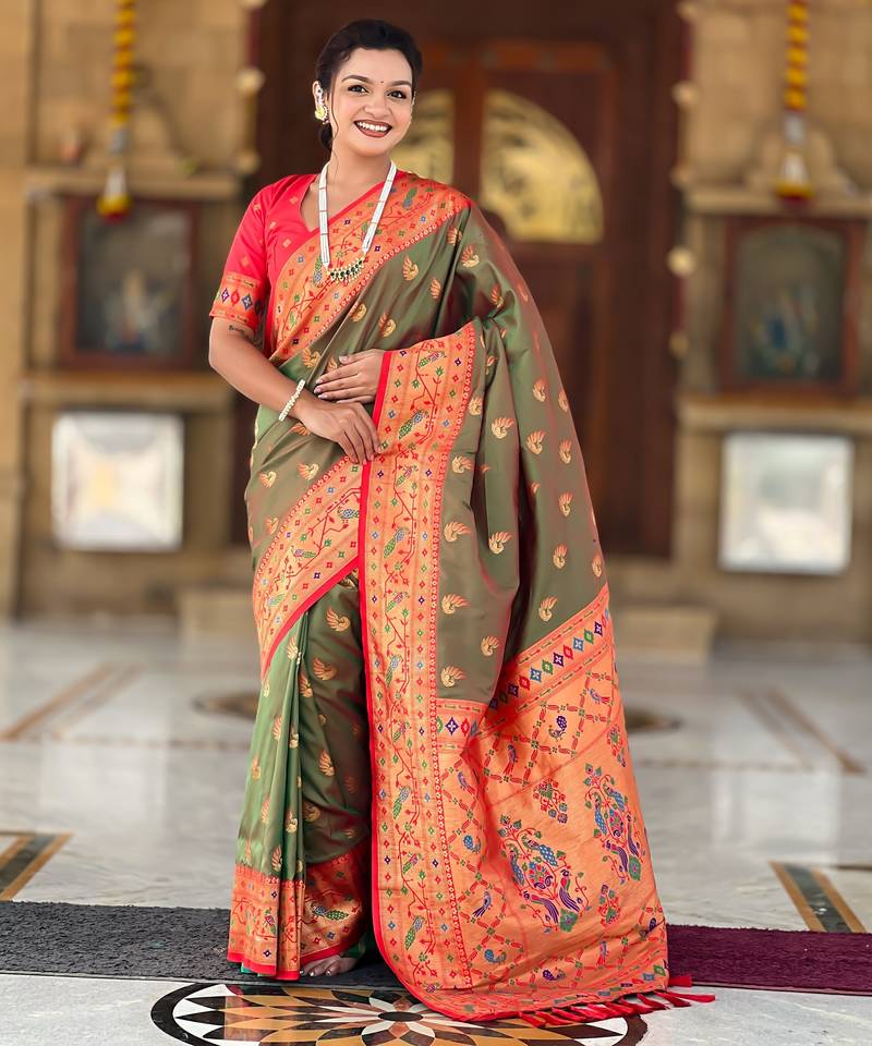 Soft litchi art silk paithani jacquard saree (sparkal-paithani-mahendi)