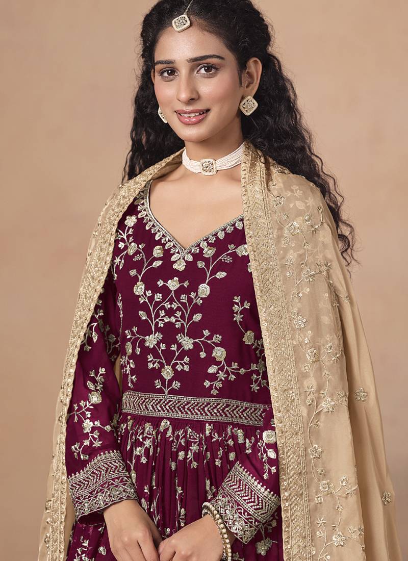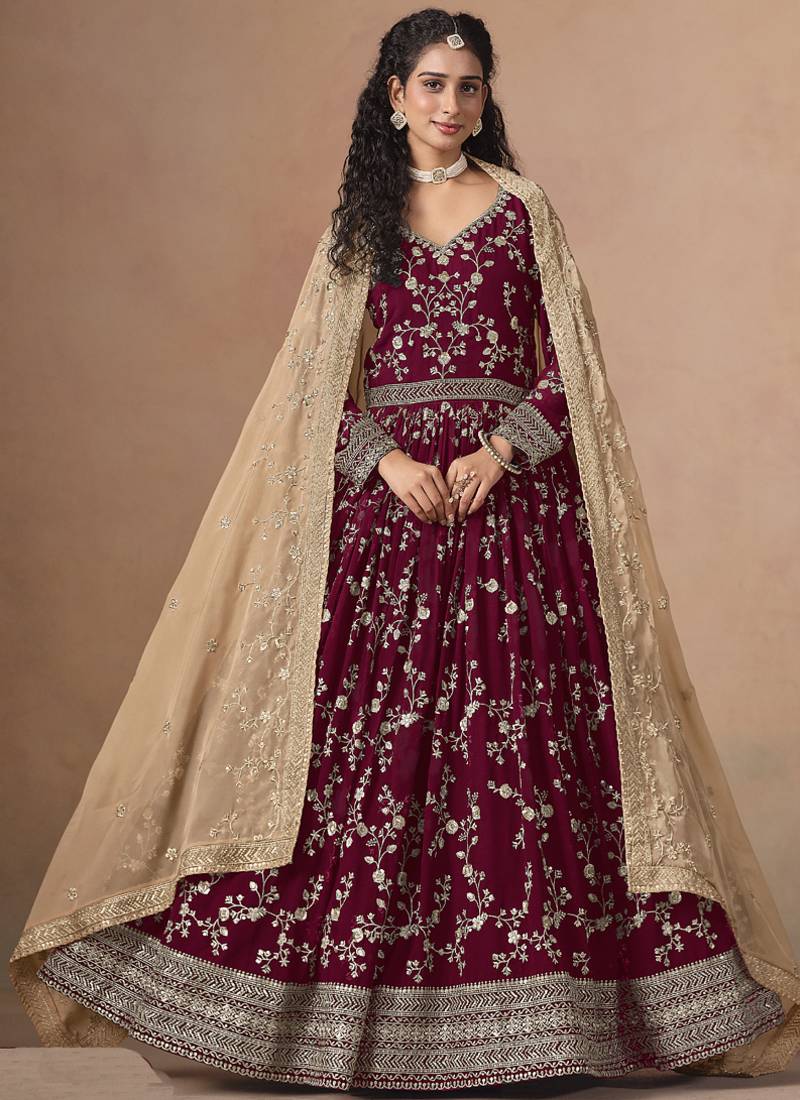 | Product Name | Maroon Georgette Embroidered Anarkali Werddind Wear Suit | |