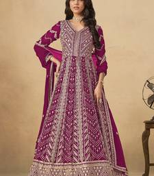 Purple georgette embroidered anarkali suit semi stitched