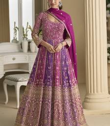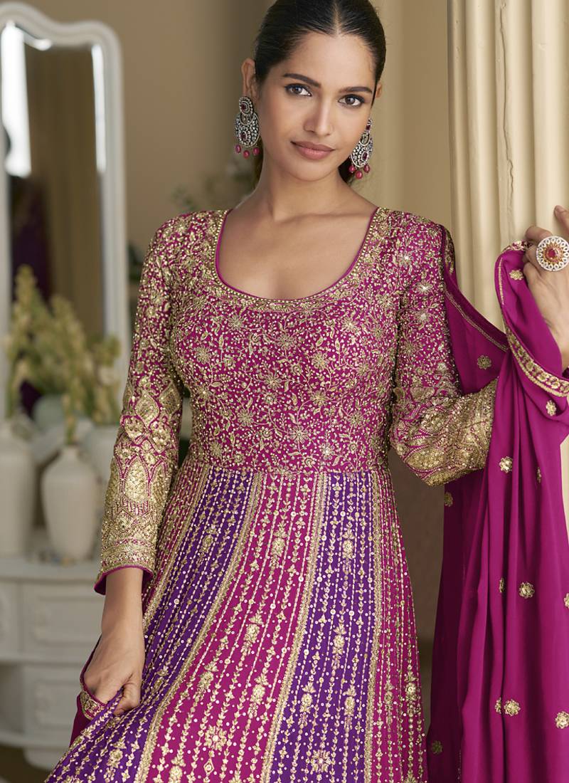 Purple georgette embroidered seroski zarkan gown with embroidered dupatta stitched