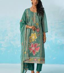Turquoise  organza embroidered party wear suit