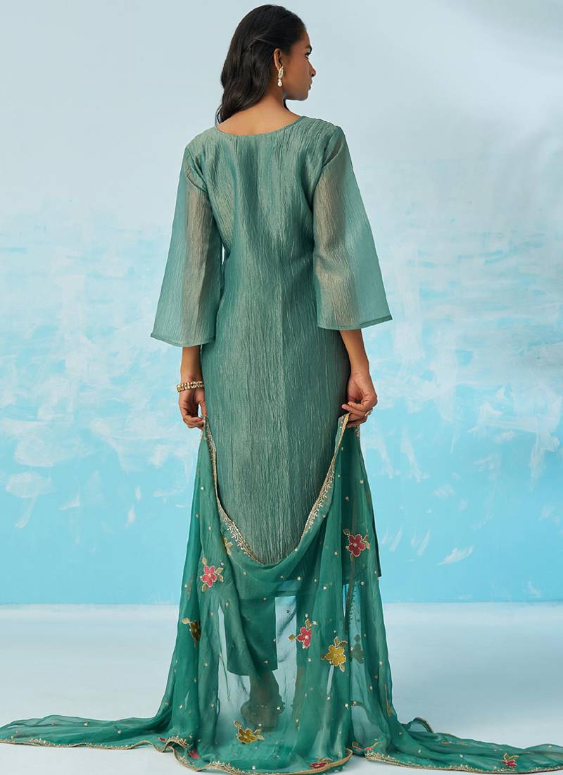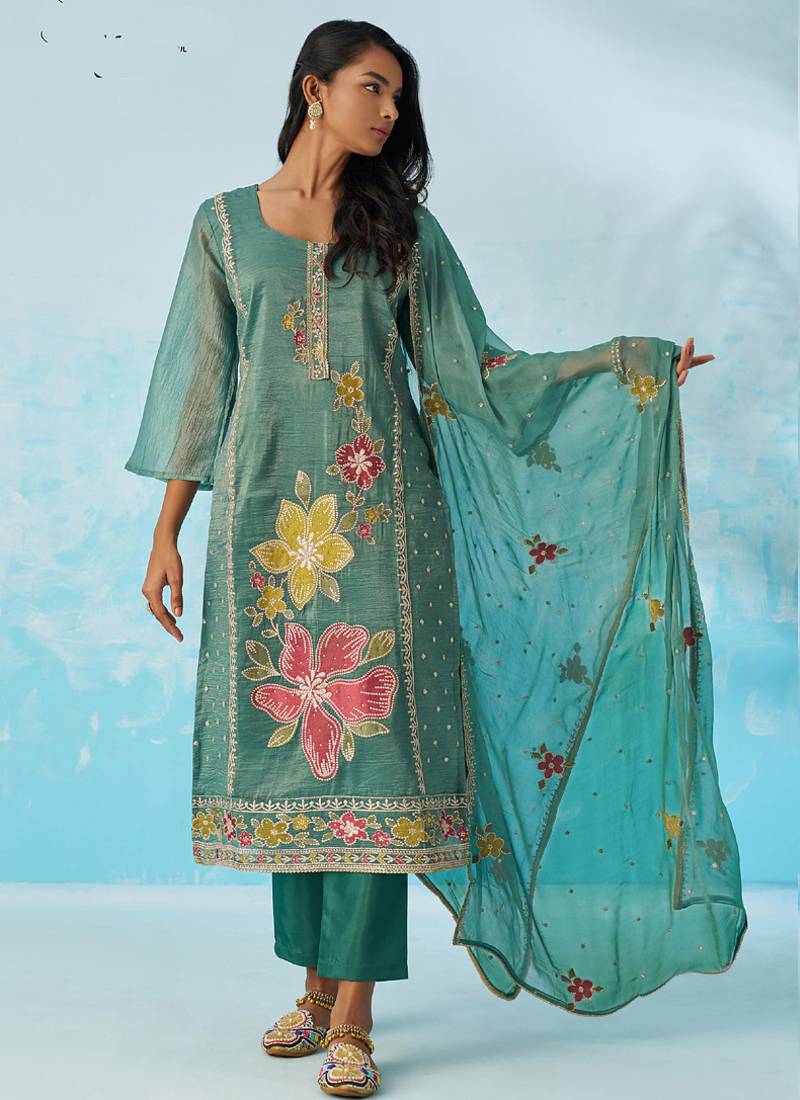 Product Name Turquoise Organza Embroidered Party Wear Suit