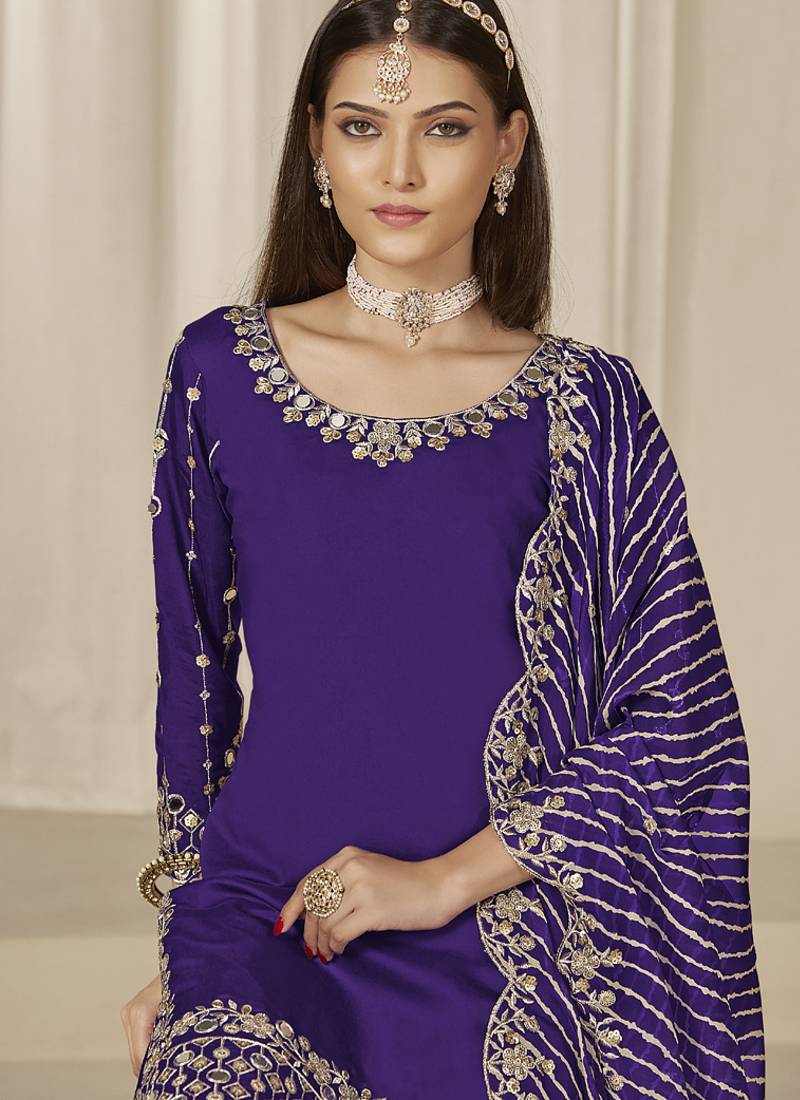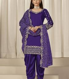 Violet roman silk embroidered salwar suit semi stitched