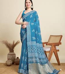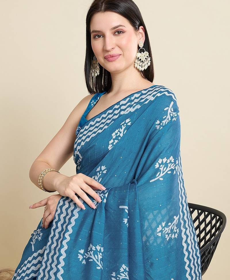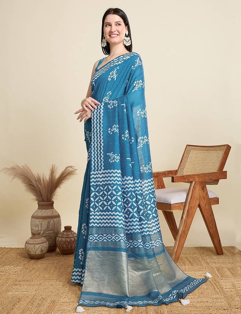 | Product Name | Blue Cotton Printed Saree With Blouse | |