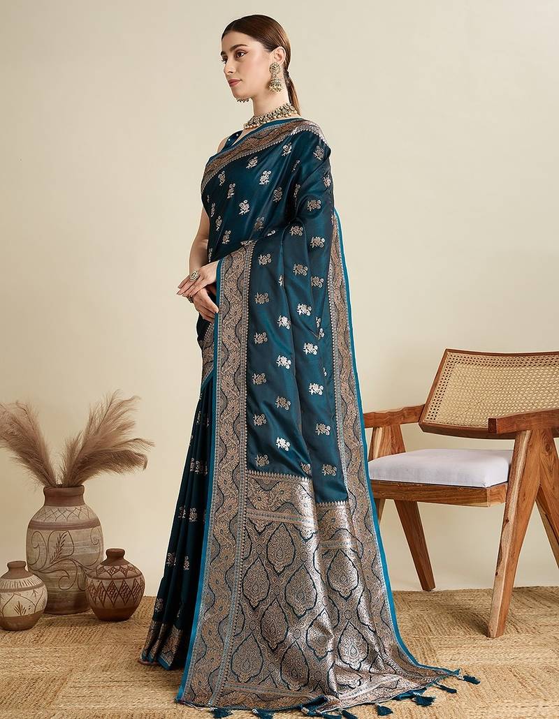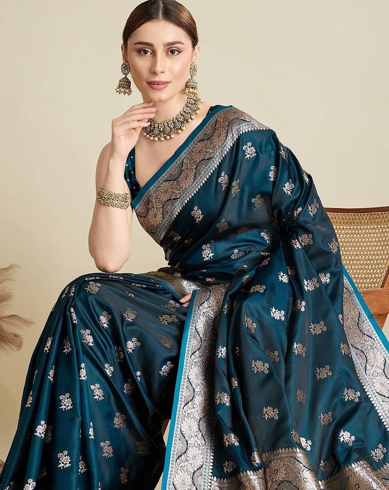 | Product Name | Blue Satin Printed Saree With Blouse | |