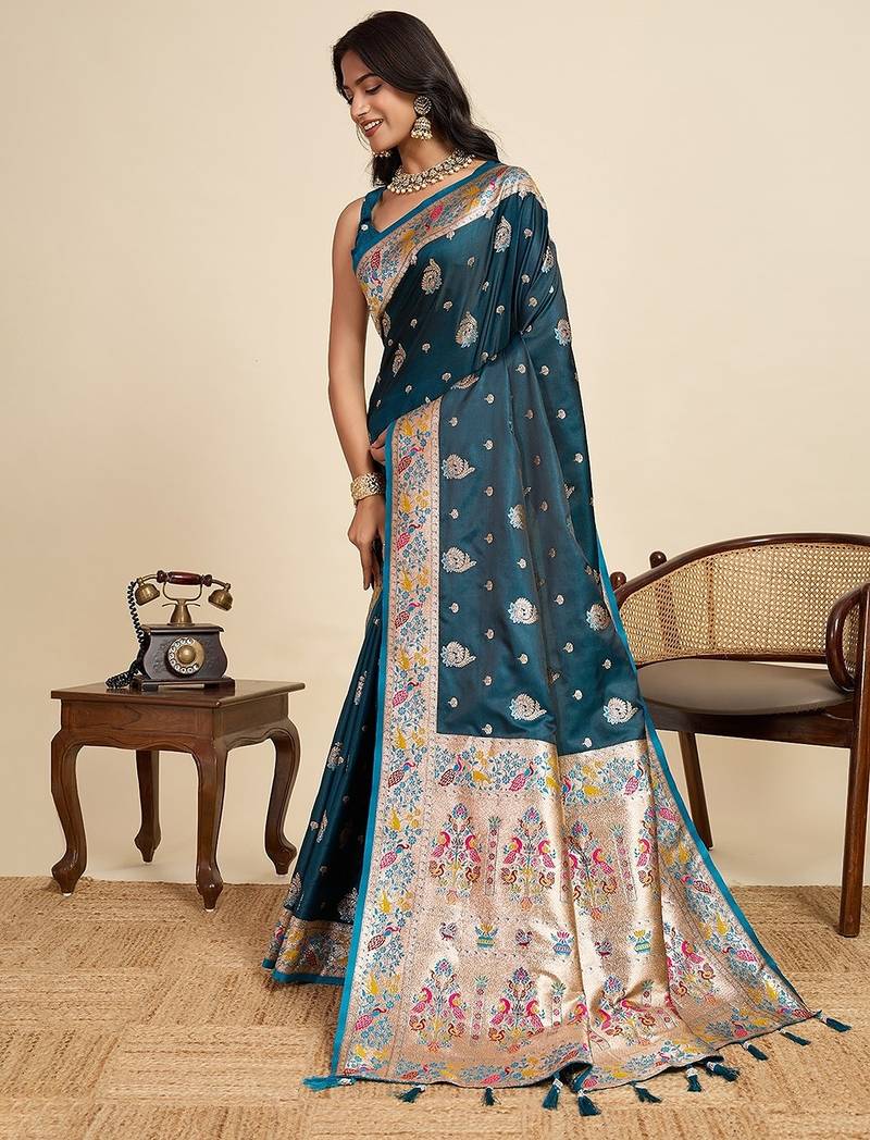 | Product Name | Blue Satin Printed Saree With Blouse | |