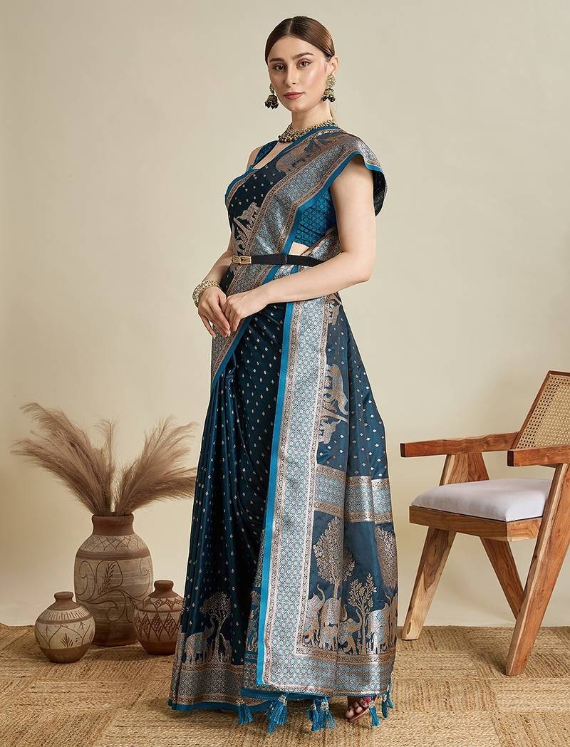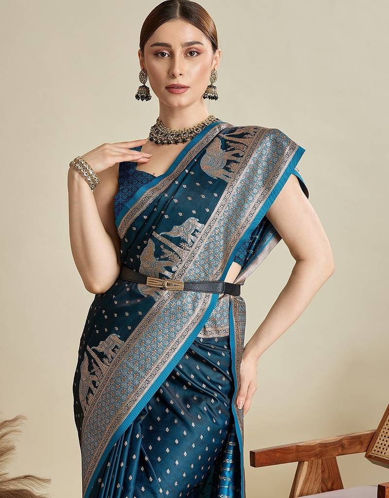 | Product Name | Blue Satin Printed Saree With Blouse | |