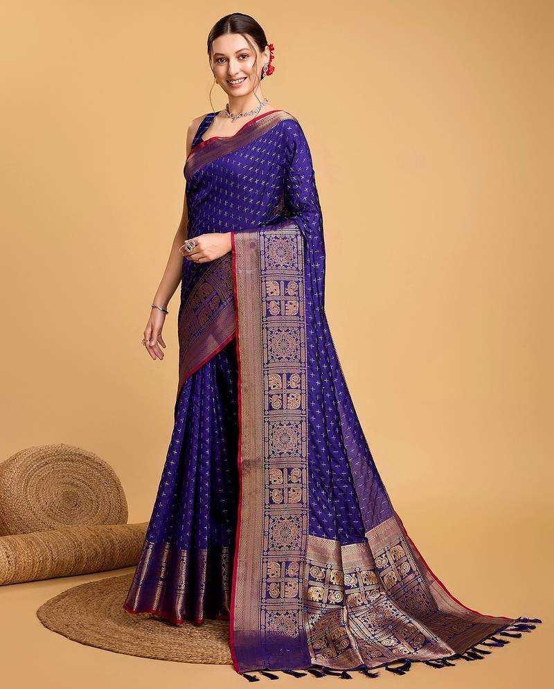 | Product Name | Blue Silk Blend Printed Saree With Blouse | |