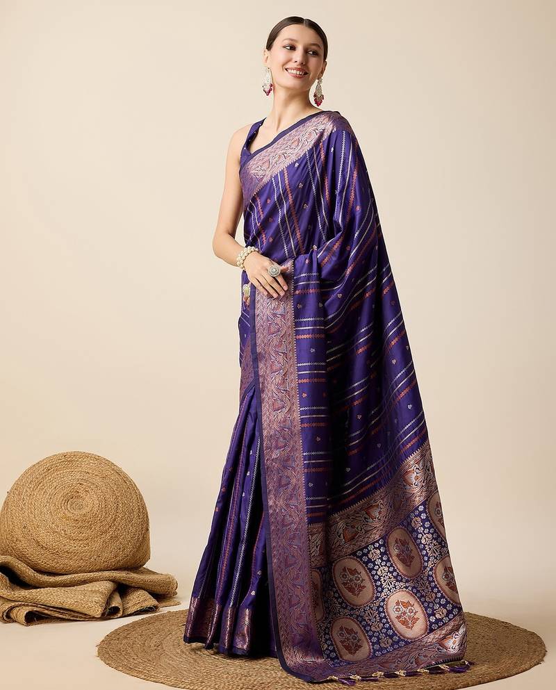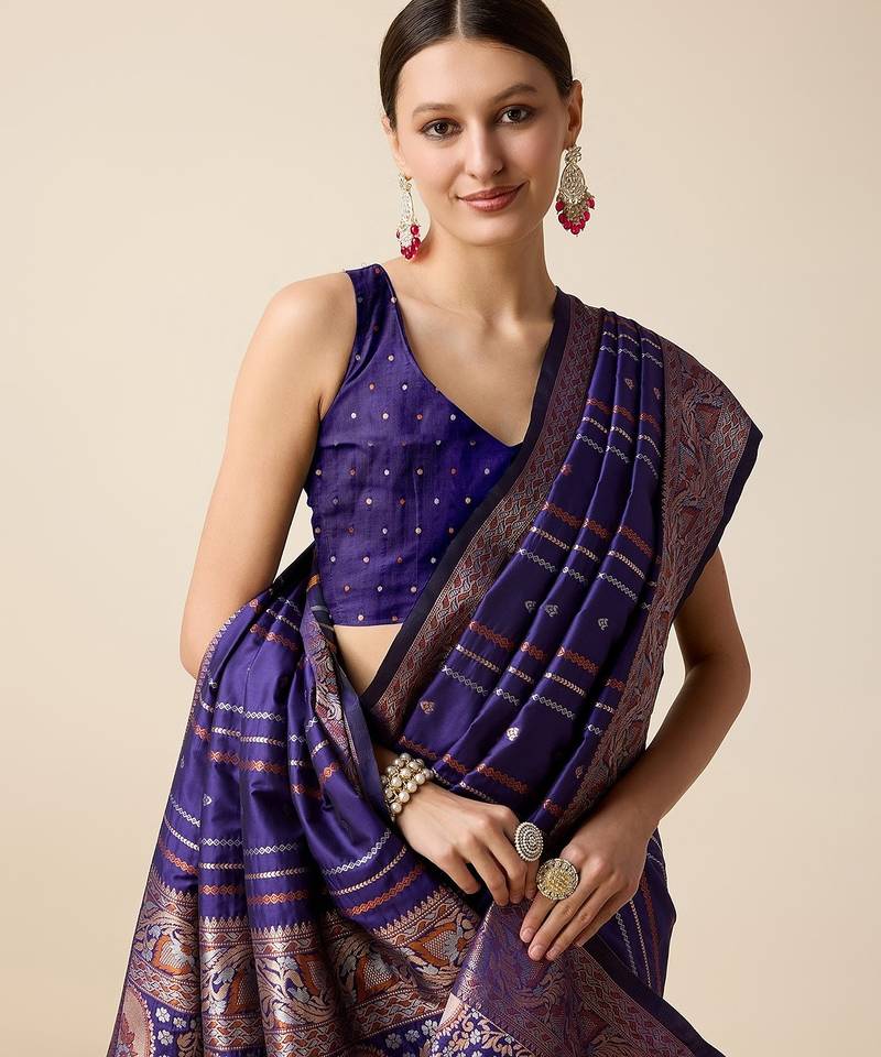 | Product Name | Blue Silk Blend Printed Saree With Blouse | |
