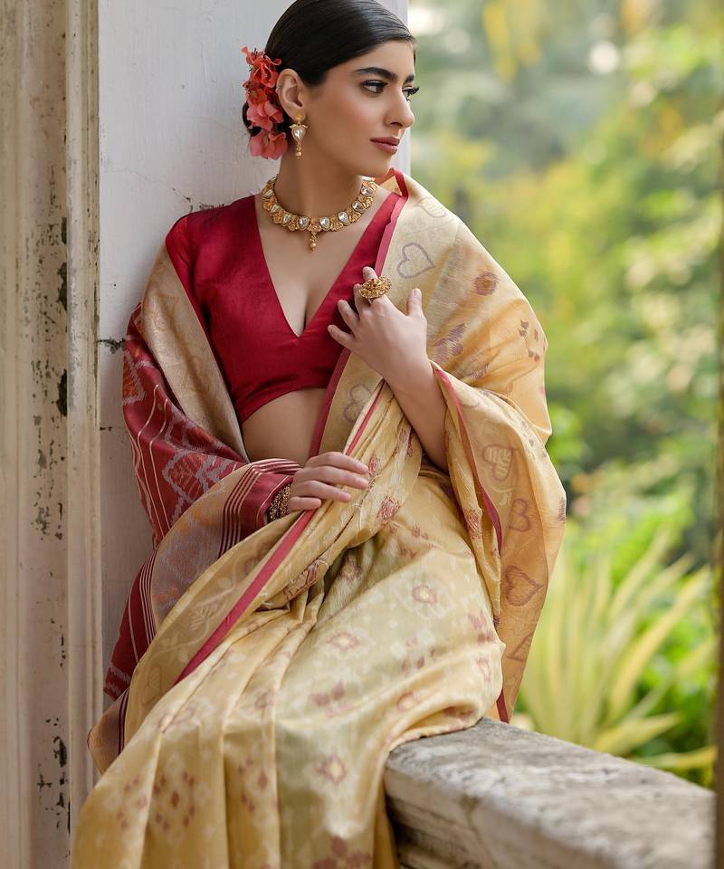 | Product Name | Cream Solid Raw Silk Blend Saree With Blouse | |