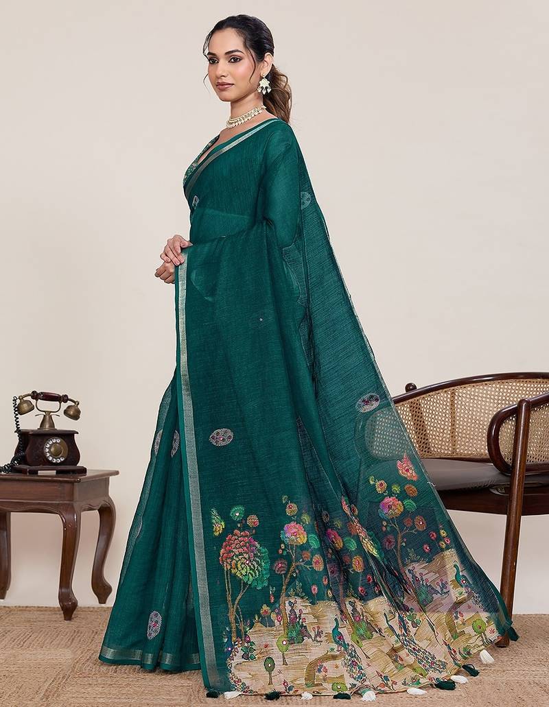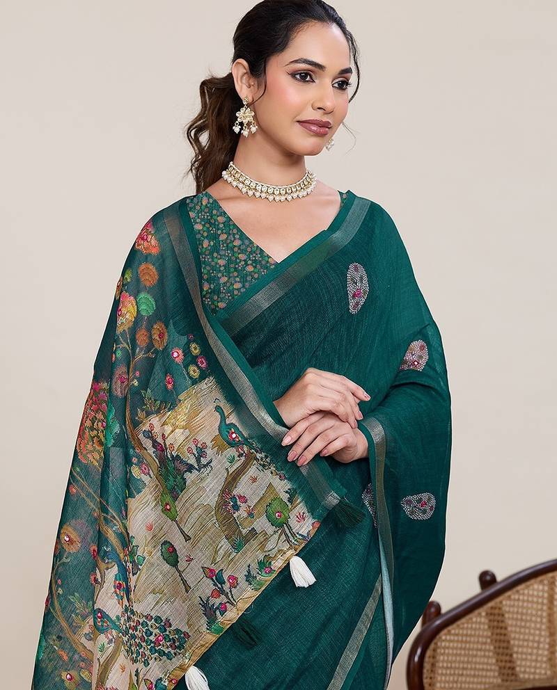 | Product Name | Green Linen Printed Saree With Blouse | |