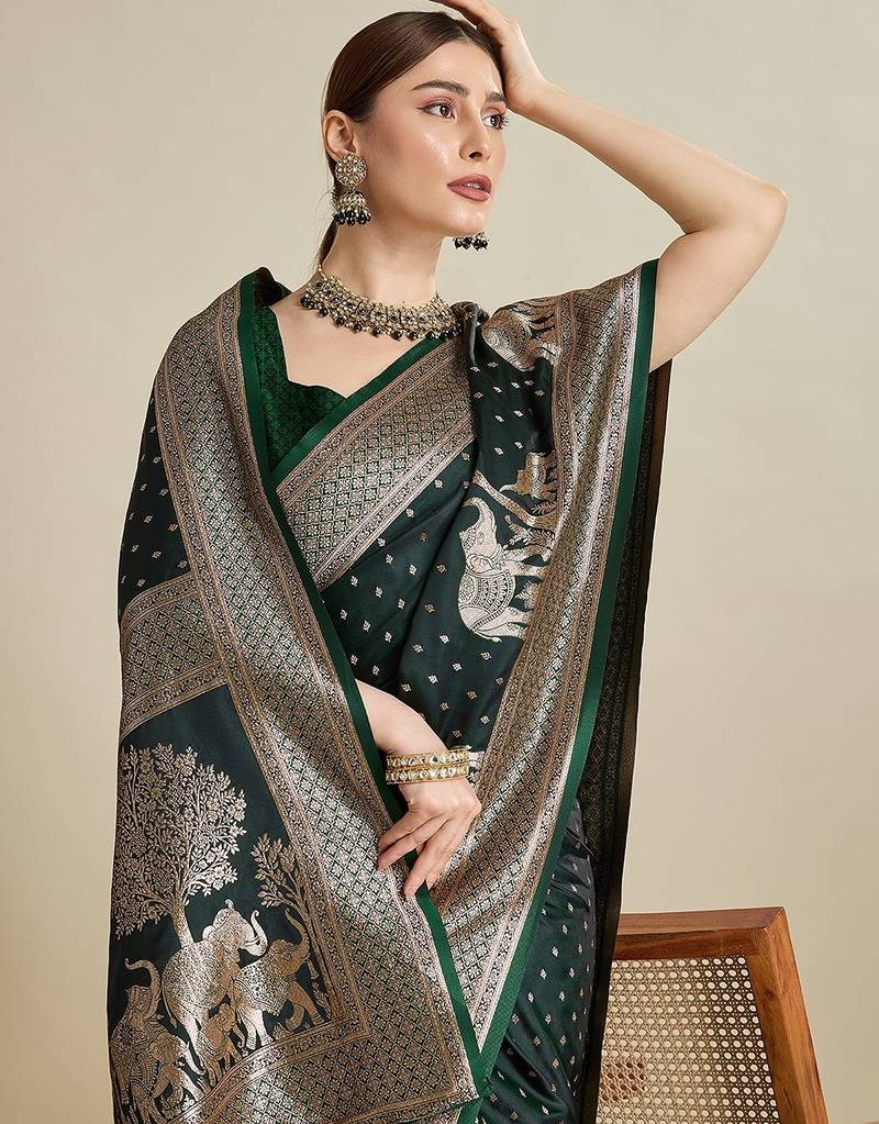 | Product Name | Green Satin Printed Saree With Blouse | |