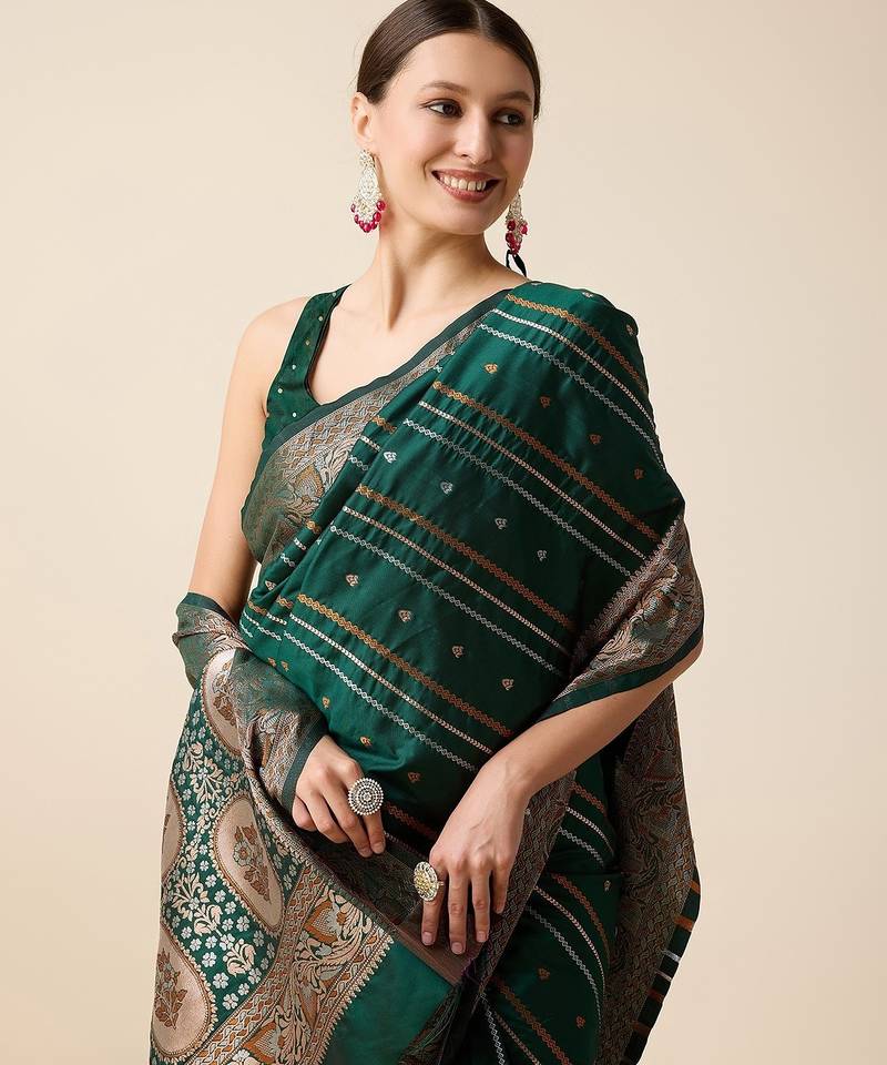 | Product Name | Green Silk Blend Printed Saree With Blouse | |