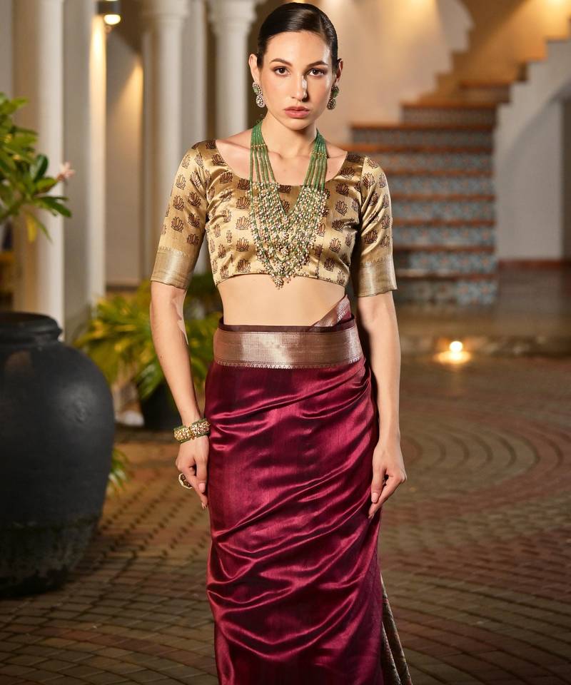 | Product Name | Maroon Solid Raw Silk Blend Saree With Blouse | |