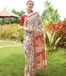 | Product Description | Soft Tussar Silk Saree With Beautiful Kalamkari Prints With Traditional Printed Pallu And Border With Fancy Tasseles With Contrast Blouse Piece |