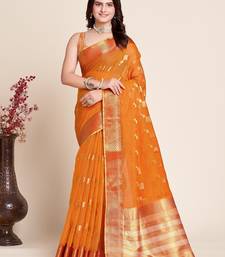 Orange chanderi printed saree with blouse