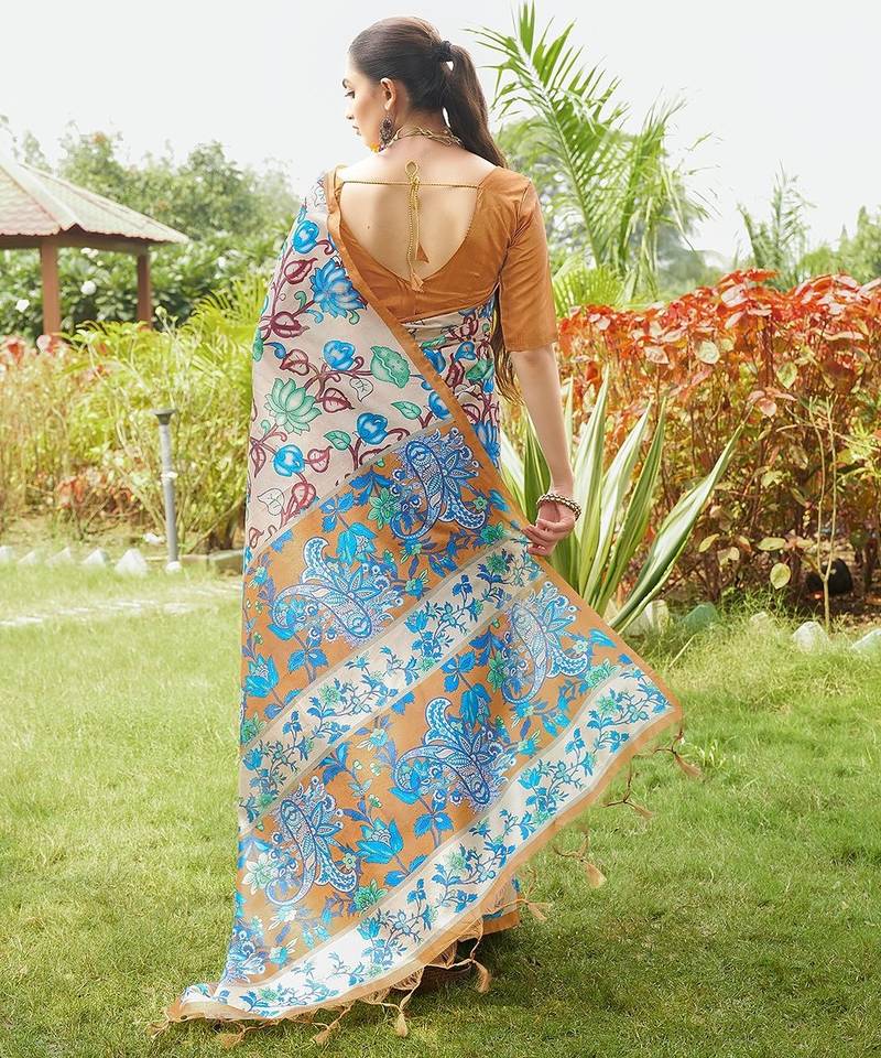 | Product Description | Soft Tussar Silk Saree With Beautiful Kalamkari Prints With Traditional Printed Pallu And Border With Fancy Tasseles With Contrast Blouse Piece |